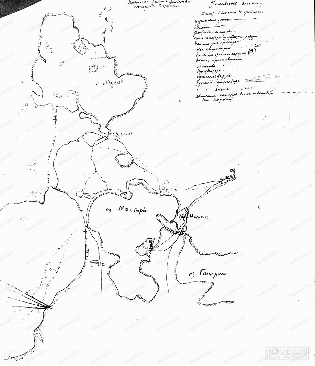 Поэтому решили, что в одну из темных ночей между озерами Нарочь и Мядзиол пехота будет проводить ложное наступление (откроет ружейный и артиллерийский огонь). Когда противник начнет отвечать, воспользовавшись шумом катера должны будут выйти из оз. Мястро в оз. Нарочь и зайдя в тыл противника откроют интенсивный огонь. Планировалось, что катера будут замаскированы ветками и огонь начнут вести из-за острова[19].