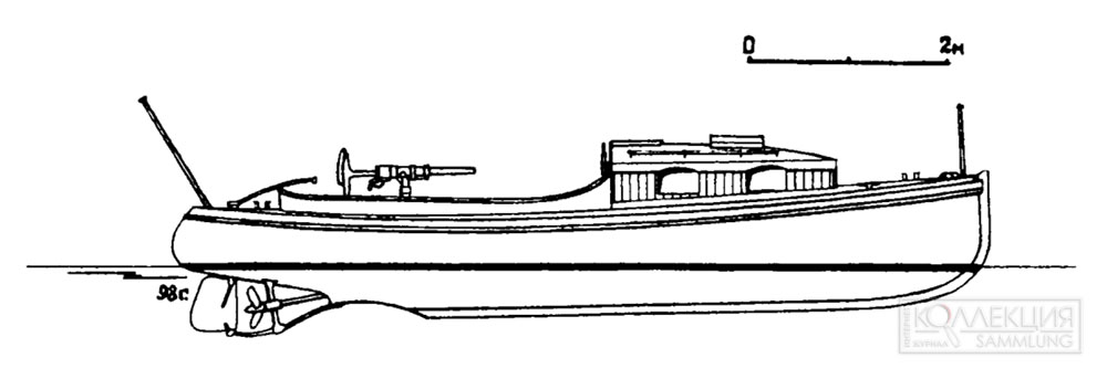 В книге Черникова «Русские речные флотилии за 1000 лет (907-1917)»[14] в 20 главе «Флотилия озера Мястра 1916–1917 гг.» приводится схема «Моторный катер (2 единицы)» которые входили в ее состав флотилии.