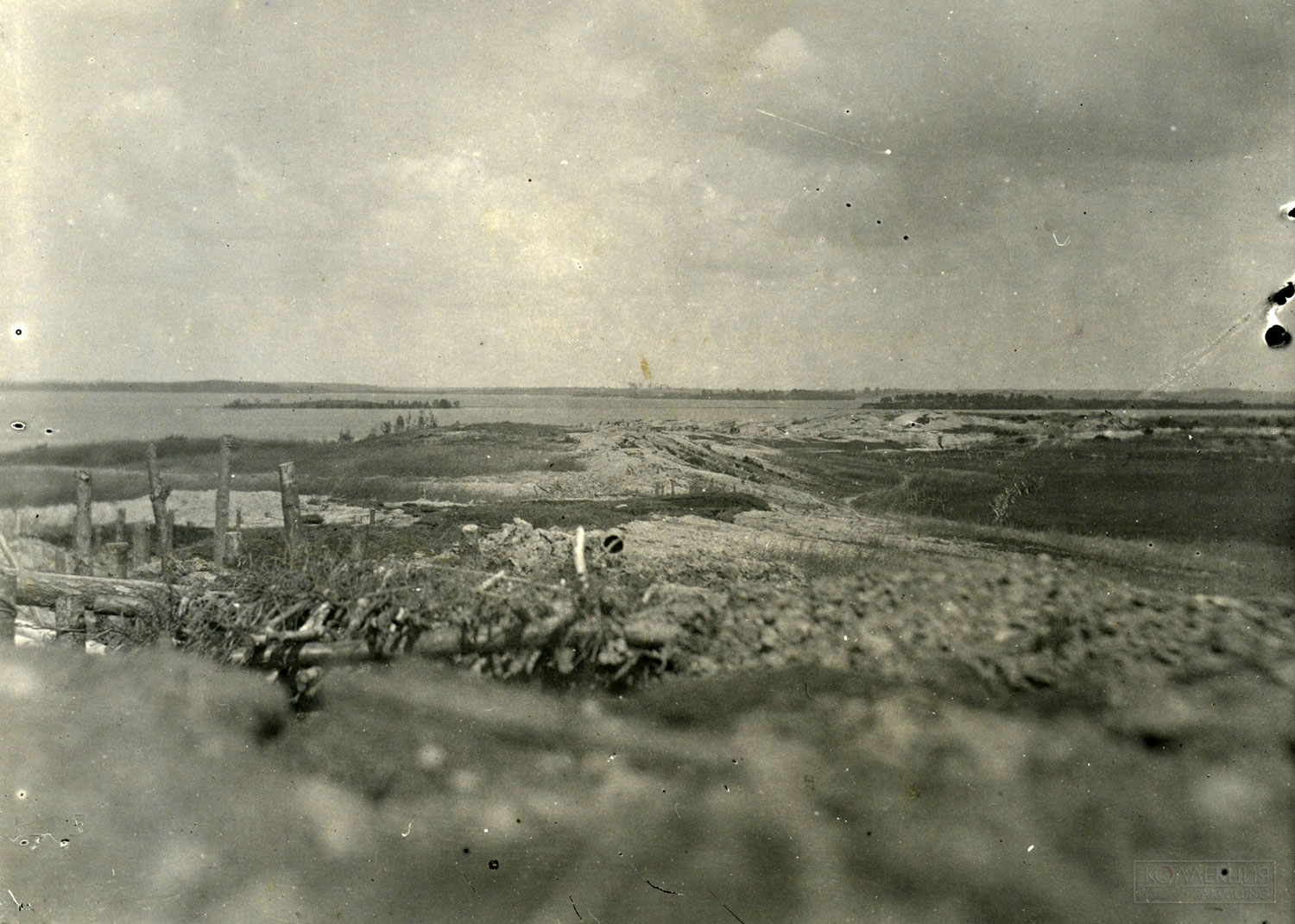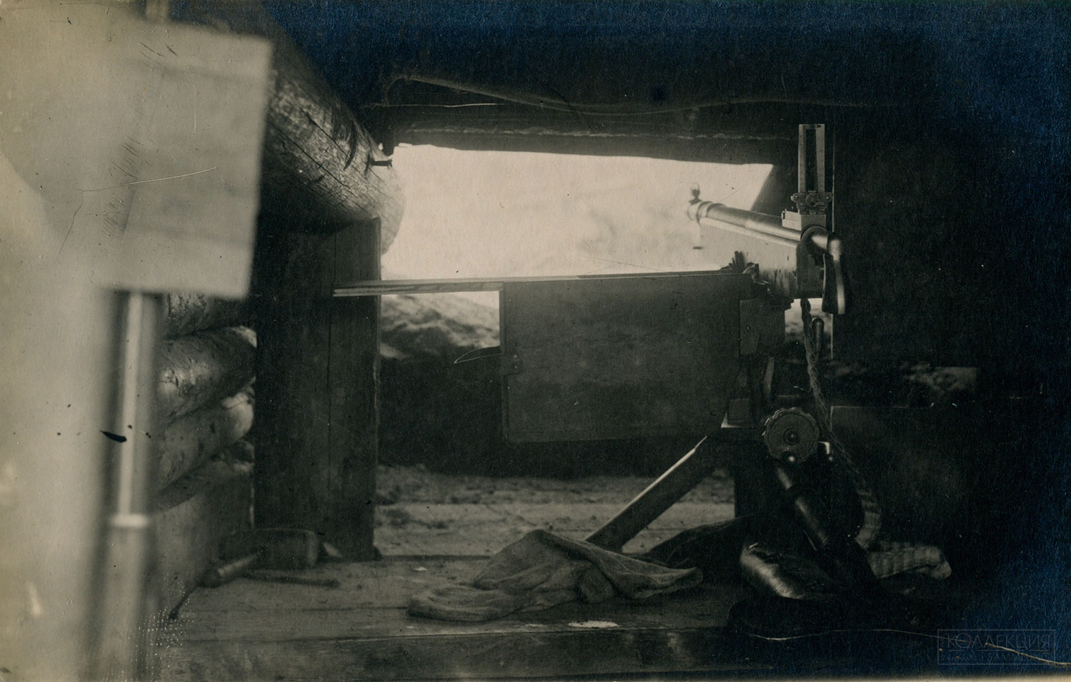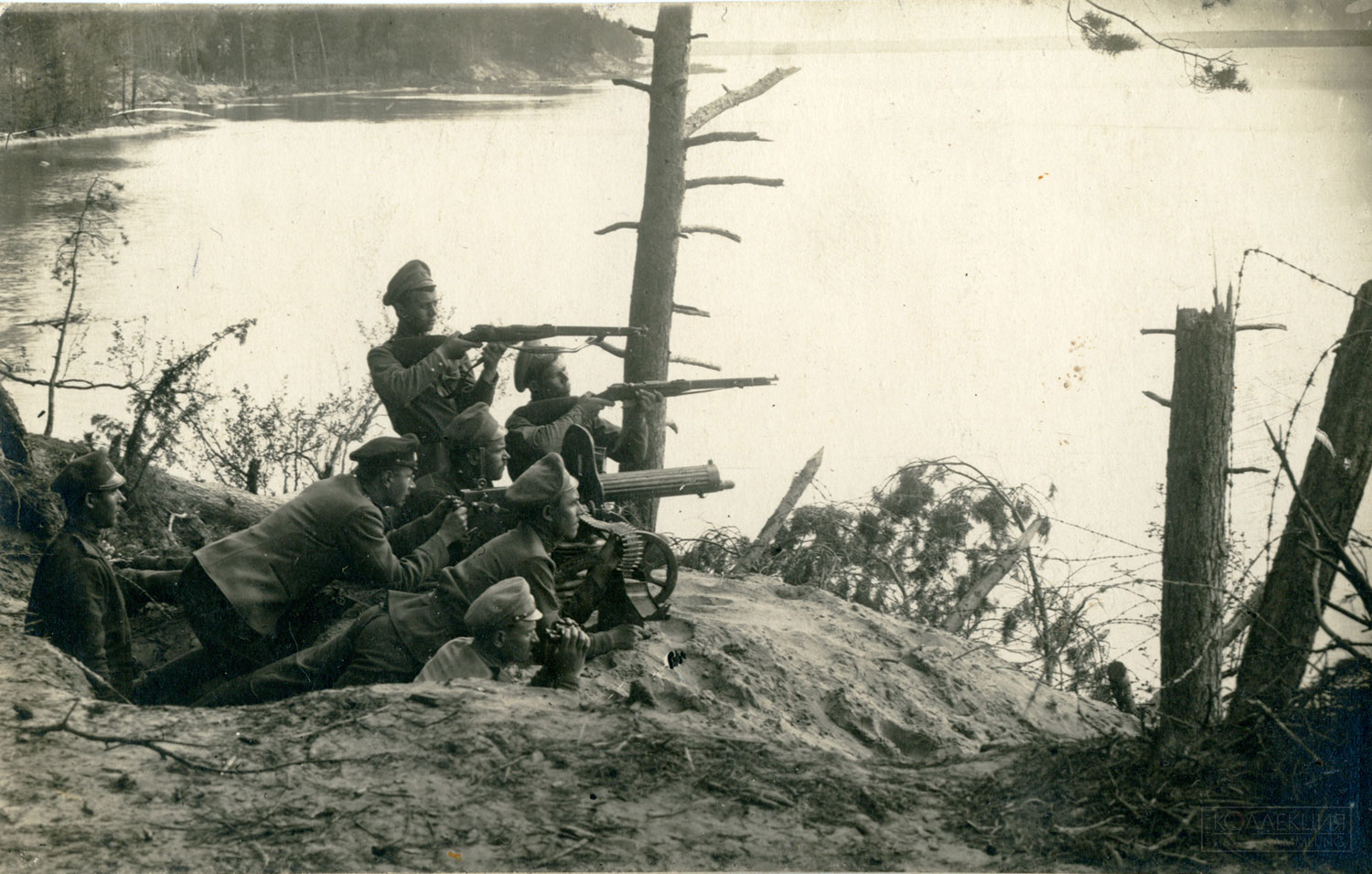 - Пулемётное гнездо пулемёта «Кольт». Озёрный отряд. Береговая охрана озера Нарочь. 4 мая 1917 года. Из семейного архива Мошкина Д.С.