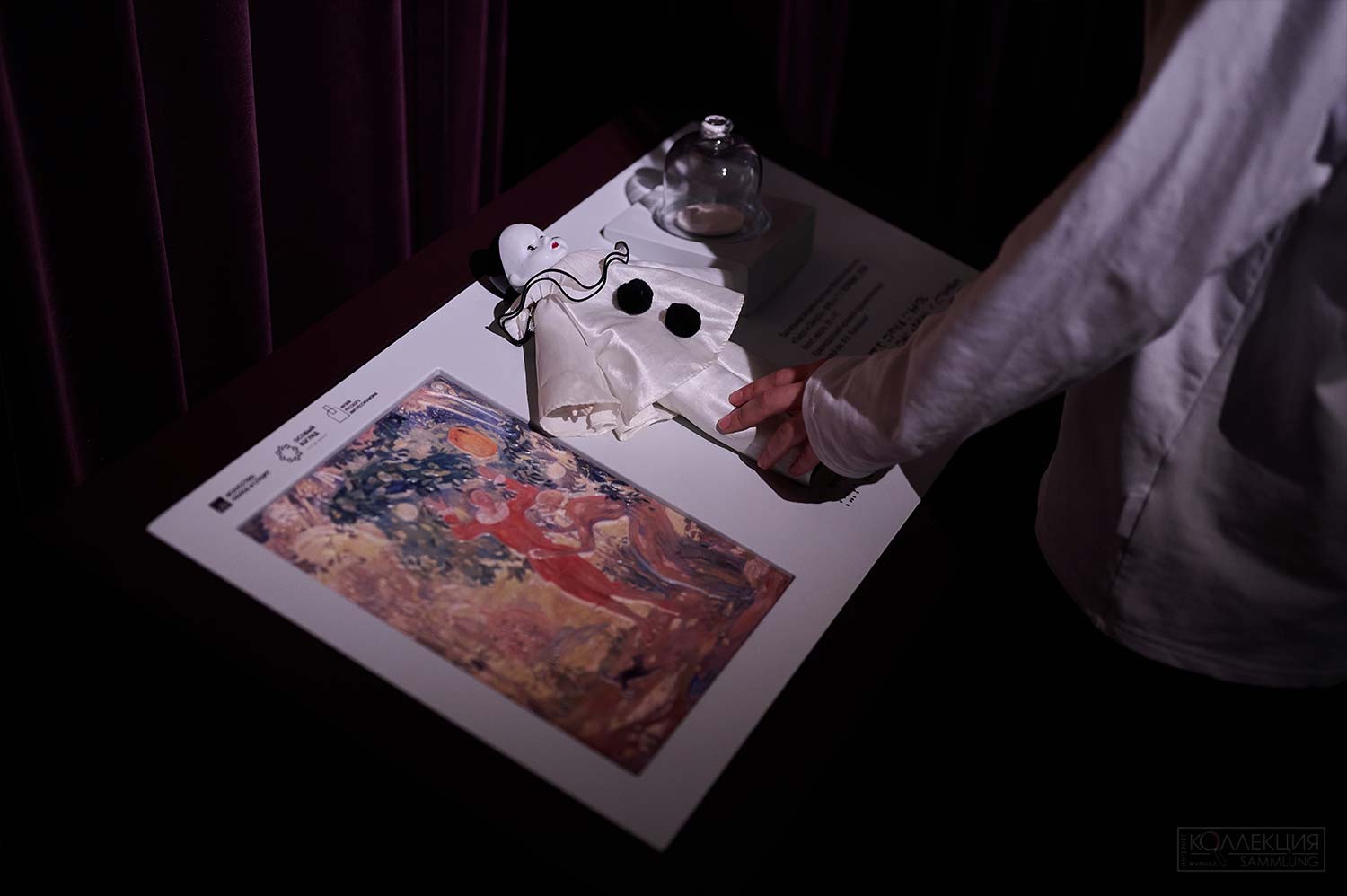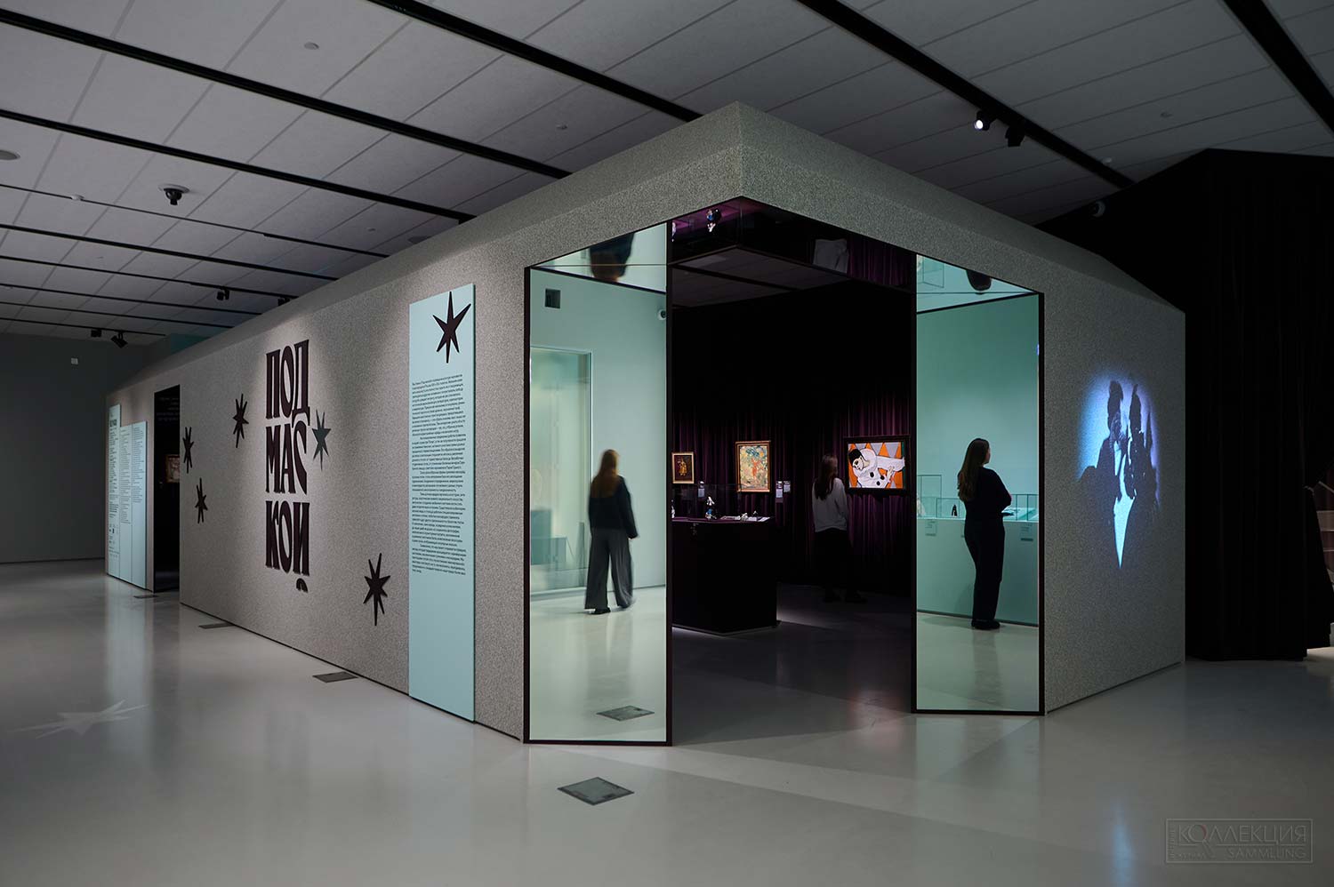 На экранах в залах музея оживут архивные фотоснимки участников праздничных вечеров прошлых столетий. Помимо них в оформлении выставки появятся тканевые занавесы и зеркала, без которых не обходится ни одна бальная зала. Кулисы открываются — и посетители попадают в пространство загадок и игр, где раздается шелест парчовой юбки и таинственный шепот, а на стенах мелькают тени изящных дам и кавалеров. В силуэтах теней скрываются герои спектакля «Маскарад» Театра на Таганке. Записанные специально для экспозиции сцены из театральной премьеры 2025 года также будут встречать посетителей на первом этаже музея.