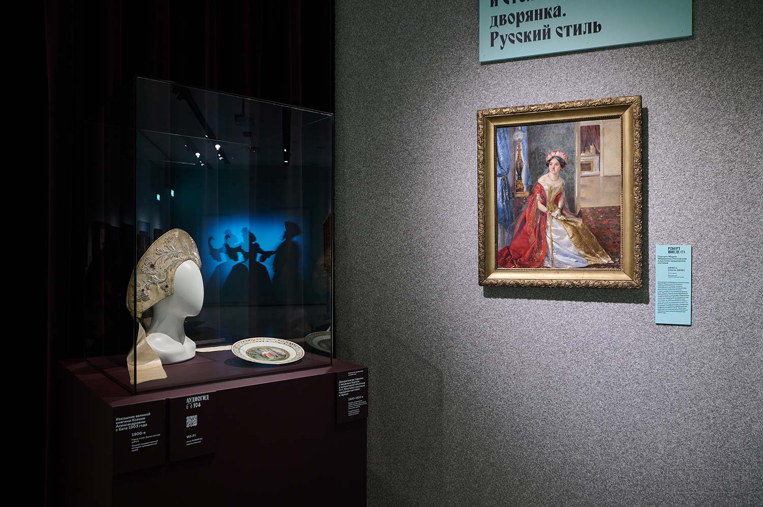 Далее перед зрителем появятся «турки», «гишпанцы» и «арапы», Татьяна и Онегин, скоморохи и петрушки, а также придворные фрейлины в «русских костюмах». Так раскрывается широкий диапазон маскарадных ролей, обязанных своим появлением литературе и истории, географии и этнографии. Отдельный блок будет посвящён русскому стилю, принимавшему различные формы на протяжении двух столетий. Апогеем его развития стали знаменитые придворные балы XIX–XX веков, и особенно бал 1903 года в честь 290-летнего юбилея дома Романовых. Посетители увидят созданный для этого празднества кокошник великой княгини Ксении Александровны из собрания Омского государственного историко-краеведческого музея.