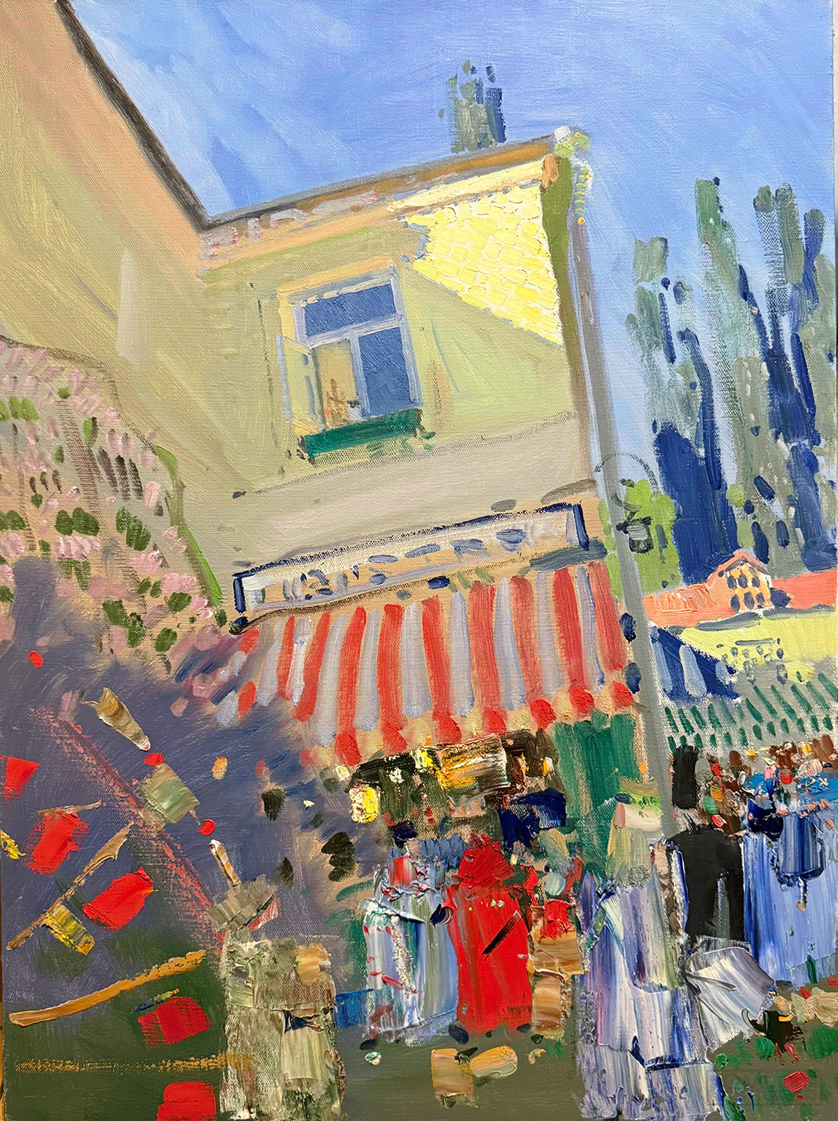 Логика проекта выстраивается как путь от широких проспектов к укромным дворам и интерьерам, от яркого дневного света к ночной подсветке витрин и окон домов. Выставка формирует пространство, где зритель может перевести дыхание и открыть для себя новое восприятие окружающего мира. Экспозицию дополняют портретные зарисовки — друзья-художники на пленэре и случайные лица прохожих.