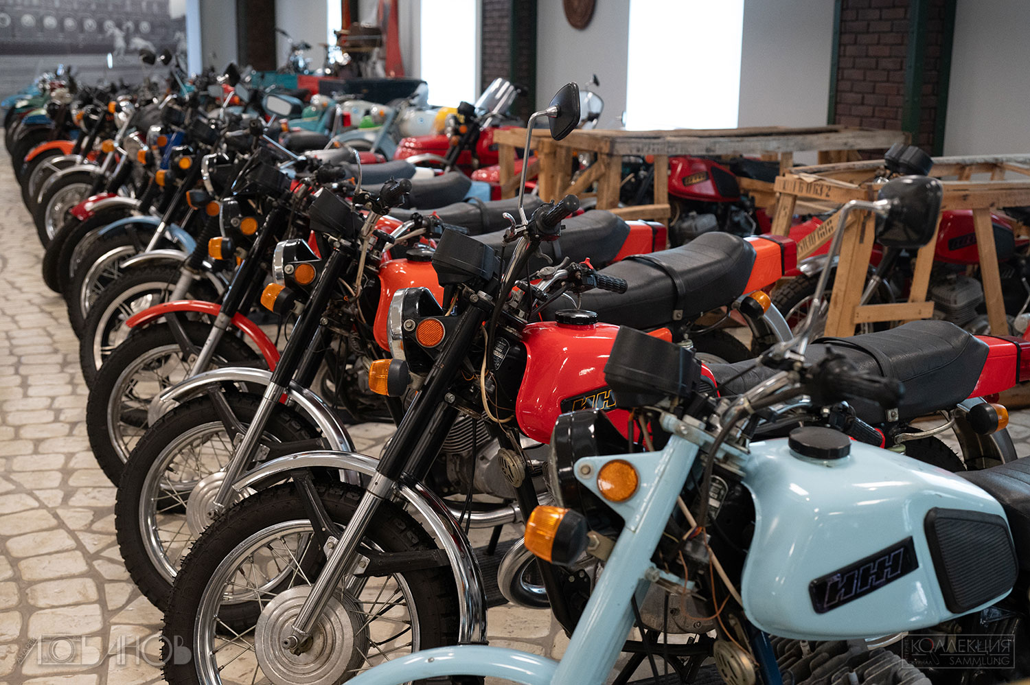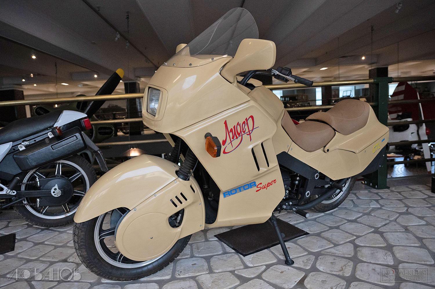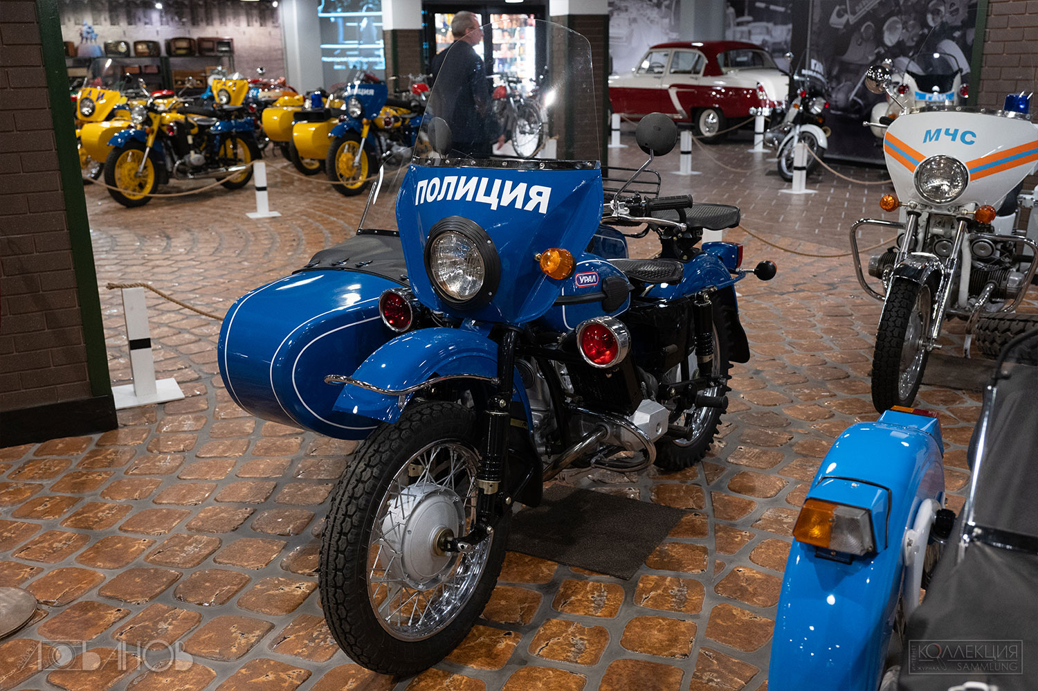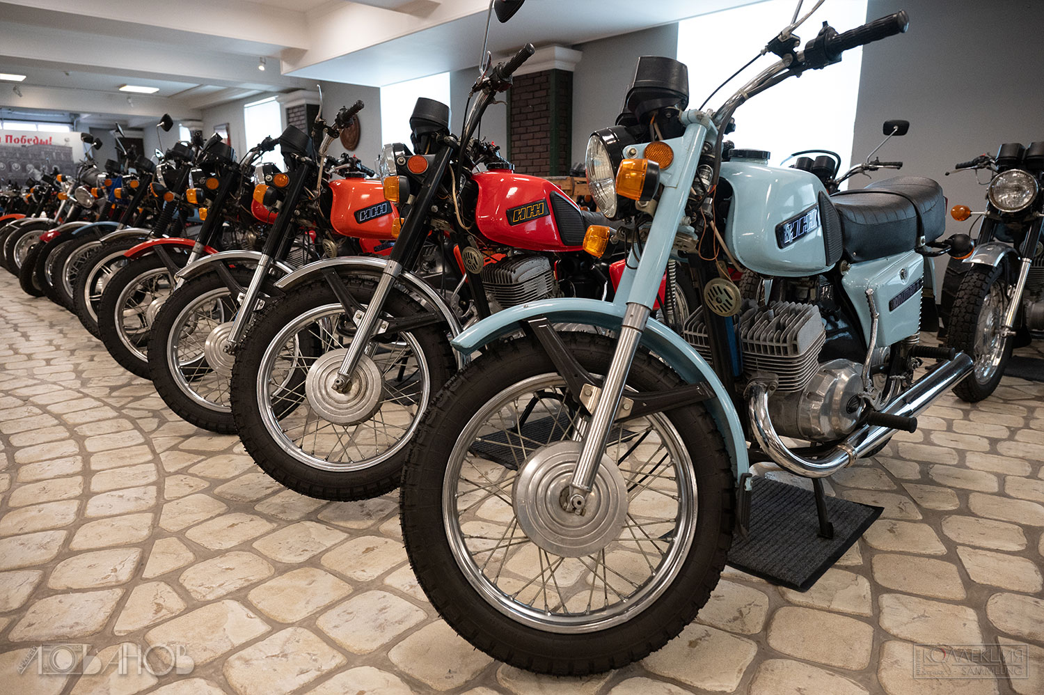 СССР подхватил эстафету в 1920-х. Первый серийный — «Л-300» (1927, завод «АМО»), копия британского Douglas. Затем Днепр, Урал, Иж — рабочие кони для городов, колхозов, армии, спорта. Иж-49 (1951) гремел по деревням, Иж-Планета (1960-е) дарила романтику молодёжи, Урал с коляской возил всю семью. В Музее Задорожного они стоят как живые (а как сказать иначе?) — хром блестит, кожа пахнет эпохой.