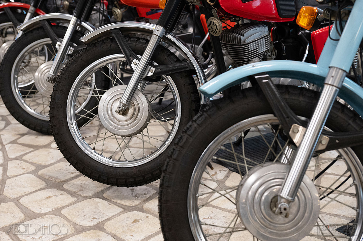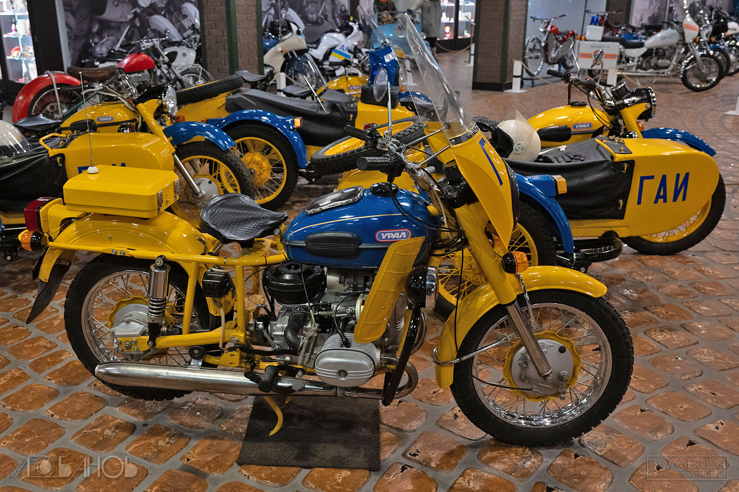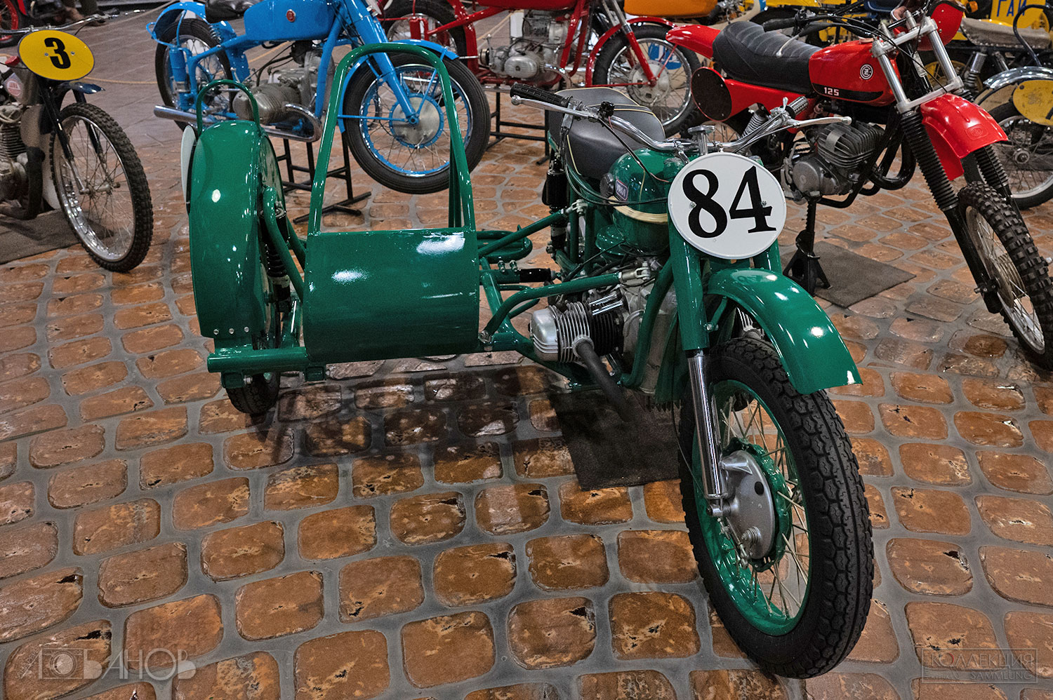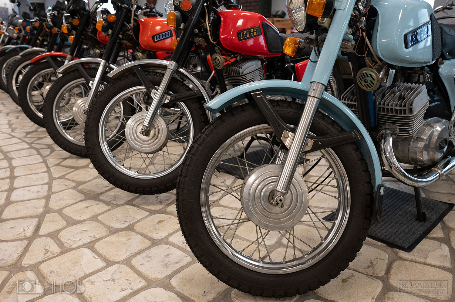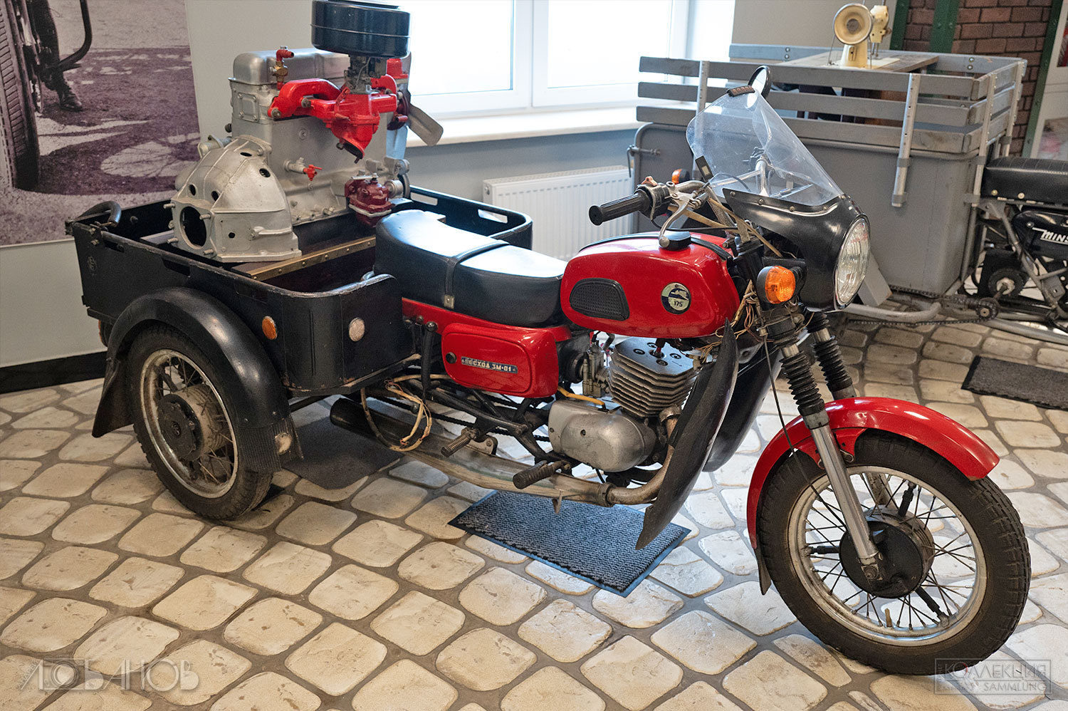 СССР подхватил эстафету в 1920-х. Первый серийный — «Л-300» (1927, завод «АМО»), копия британского Douglas. Затем Днепр, Урал, Иж — рабочие кони для городов, колхозов, армии, спорта. Иж-49 (1951) гремел по деревням, Иж-Планета (1960-е) дарила романтику молодёжи, Урал с коляской возил всю семью. В Музее Задорожного они стоят как живые (а как сказать иначе?) — хром блестит, кожа пахнет эпохой.