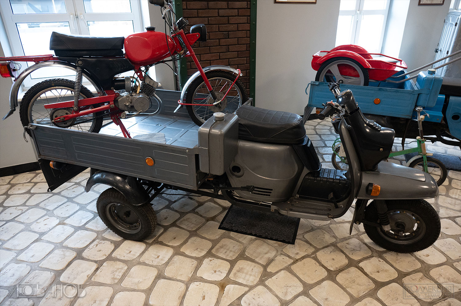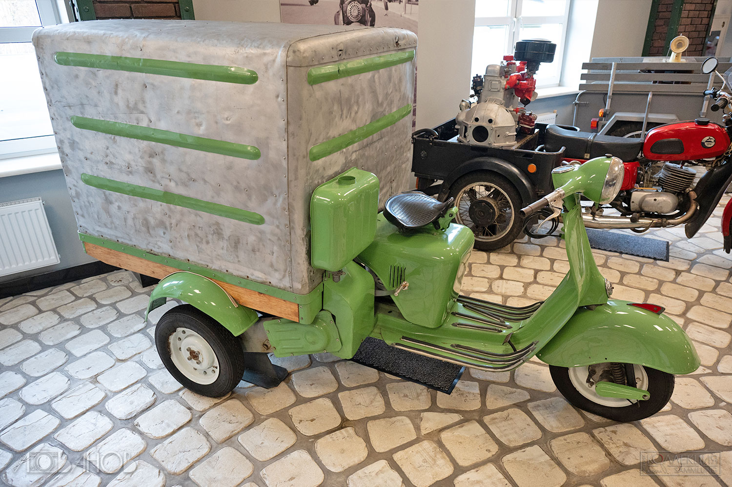 Выпускались двух- и трёхколёсные модели с боковым или задним прицепом (а сегодня чего только не увидишь на улице) — коляской, предназначенной для перевозки одного-двух человек или небольшого груза массой до 200 кг; приводятся в действие двигателем внутреннего сгорания.