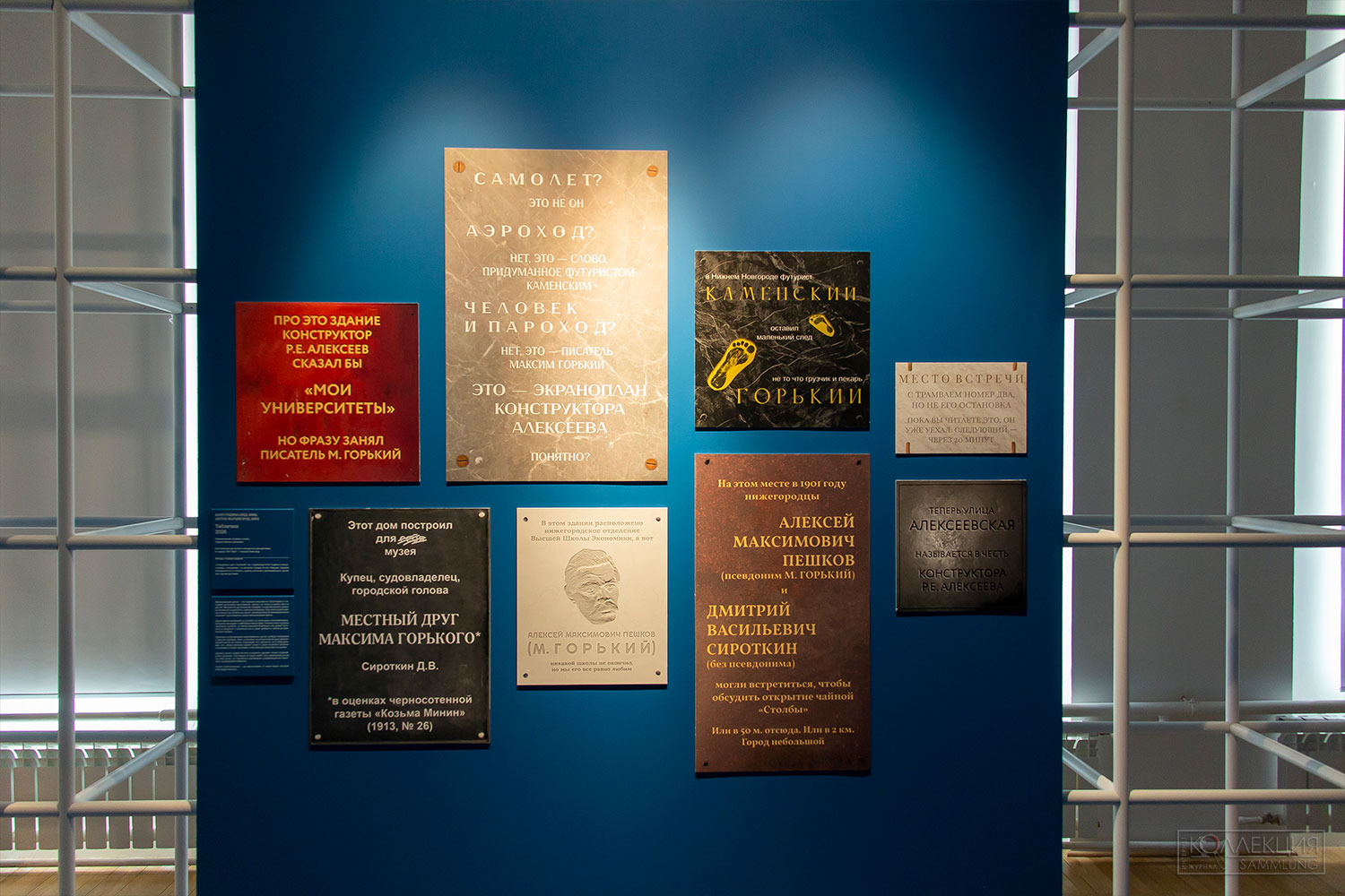 Экспозиция объединит более ста предметов из музейных собраний, среди которых Государственный Русский музей, Государственный научно-исследовательский музей архитектуры им. А.В. Щусева, Государственный центральный музей современной истории России, Государственный музей истории российской литературы им. В.И. Даля, Государственный музей В.В. Маяковского, Нижегородский государственный художественный музей, Нижегородский государственный историко-архитектурный музей-заповедник, Государственный музей А.М. Горького, а также Центр туризма «Русские крылья» из Чкаловска.