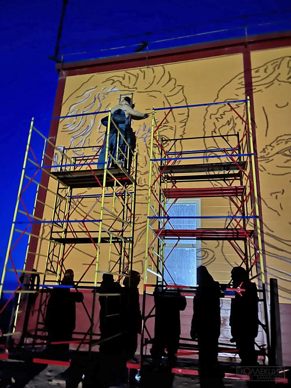 А.М.: На самом деле, мы заранее разрабатывали определенную технологию, чтобы стрит-арт сохранился как можно дольше. Чтобы вы понимали, я только три с половиной года занимался согласованием этого проекта, из них год мы вели техническую проработку, чтобы дать некую гарантию на производство работ. Рисунок продержится не менее пяти лет, а то и больше. Скорее всего, с ним ничего критичного не случится, так как мы тут уже перестраховались: использовали специальные краски, а также покрывали их сверху лаком для повышения устойчивости к ультрафиолету. Потому что основная проблема для рисунка – это даже не резонансные перепады температур, а очень сильное солнечное излучение, которое подвергает выцветанию темные оттенки краски. Поэтому было принято решение применять лак.