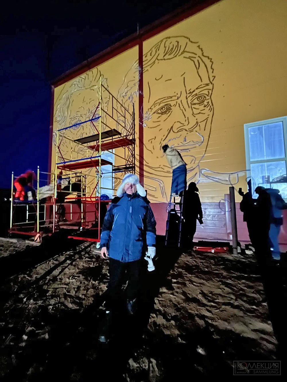 Напомним, в конце января в Кейптаун выдвинулась группа из трех человек во главе с петербуржцем, идейным вдохновителем этого амбициозного антарктического проекта, генеральным директором «ВоенМемориалПроекта» Арсением Мухиным. Компанию ему составили два представителя белорусской арт-группы HoodGraff – руководитель данного творческого сообщества Артём Бурж и художник Илья Ис. Маленький коллектив из Могилёва известен созданием на фасадах петербургских домов больших рисунков, привлекающих внимание и горожан, и гостей Северной столицы. Виктор Цой, Владимир Высоцкий, Михаил Горшенев («Горшок» из группы «Король и Шут»), Юрий Шевчук… Многие туристы считают своим долгом сделать селфи возле нанесённого вручную рисунка во всю стену, по детализированности не уступающего фотографии… Некоторые картины давно вышли за понятийные рамки и превратились в знаковые объекты петербургского уличного искусства. В общей сложности за 13 лет работы ребята создали несколько сотен подобных изображений, причем не только в России.
