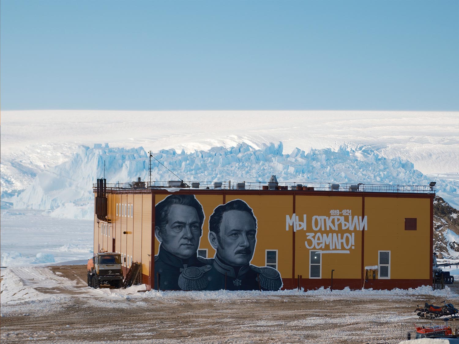 Стрит-арт площадью около 100 кв. метров теперь украшает стену здания на территории российской антарктической станции Прогресс. Созданные вручную фотореалистичные портреты первооткрывателей Антарктиды, русских морских офицеров Фаддея Беллинсгаузена и Михаила Лазарева сопровождает надпись: «МЫ ОТКРЫЛИ ЗЕМЛЮ!».