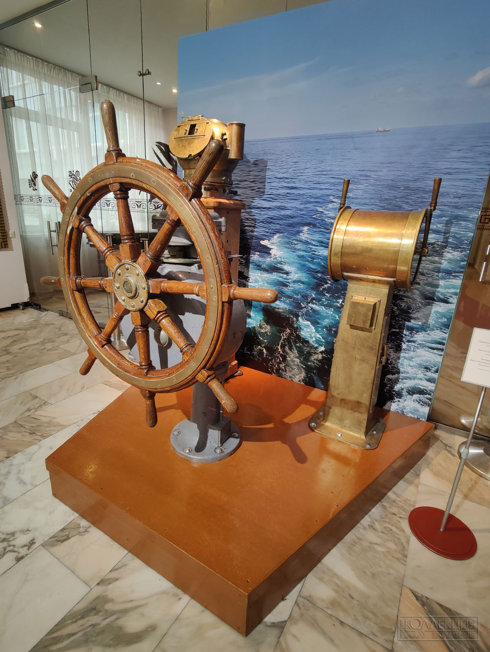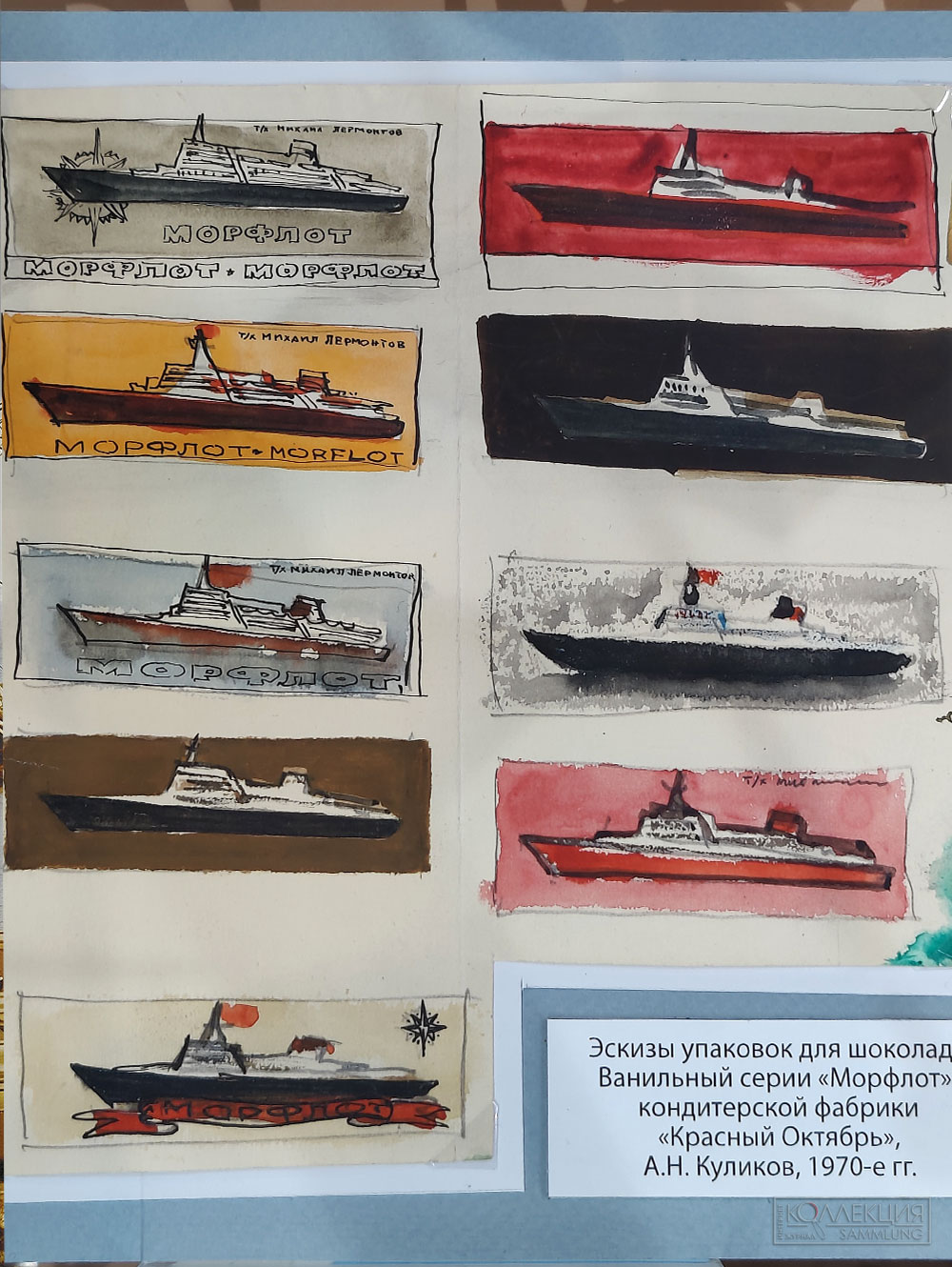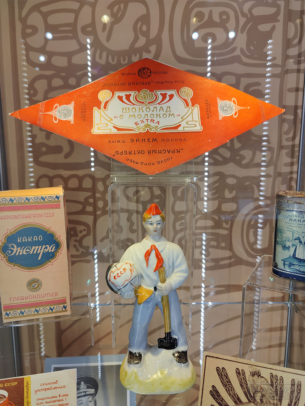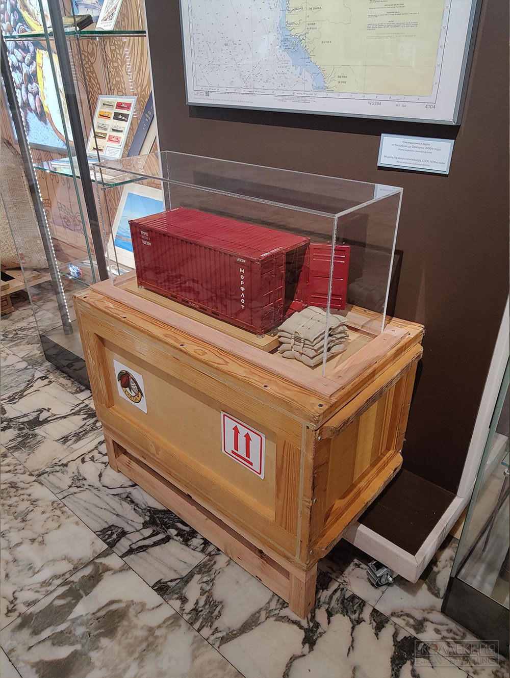 На выставке представлены: макет теплохода «Ленинская гвардия», который был важной частью советского торгового флота и доставлял какао-бобы из стран Африки в СССР, корабельный штурвал, фотографии оборудования и этапов производства шоколада, а также документы эпохи — кондитерская упаковка и этикетки с морской тематикой фабрики «Красный Октябрь» и концерна «Бабаевский», на которых отражены достижения нашей страны.