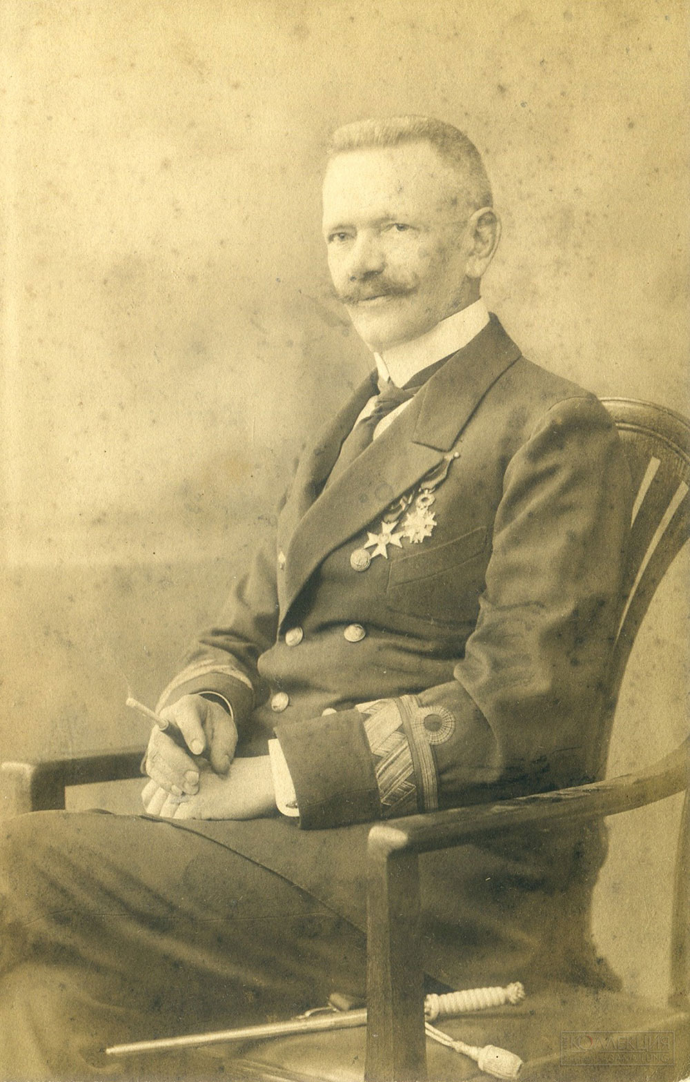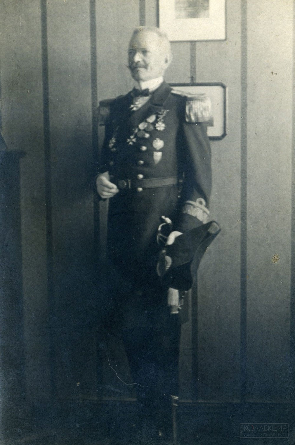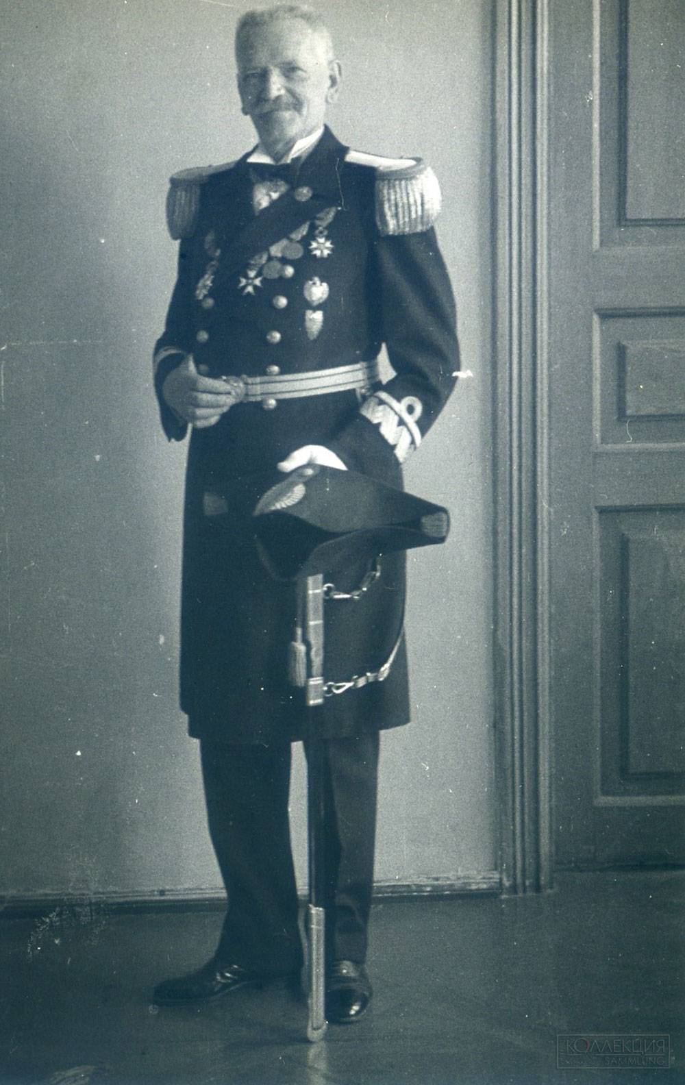 Михаил Боровский в Вильне. На нём парадная форма польского контр-адмирала с польскими и иностранными (французскими) наградами. Фотография снята предположительно дочерью адмирала Изабеллой.