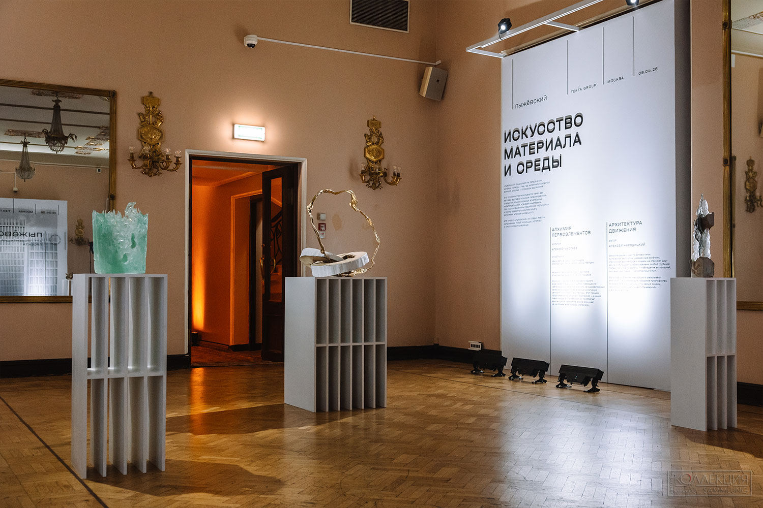 В свою очередь один из самых влиятельных арт-деятелей России, куратор Фонда поддержки современного искусства Cosmoscow Алексей Масляев представил выставку «Алхимия первоэлементов» — размышление о творчестве как алхимическом процессе. Подобно превращающимся в золото неблагородным металлам, «первоэлементы» — дерево, стекло, камень и металл — преобразились во вневременную культурную ценность: искусство и архитектуру. В работах популярных художников Дениса Патракеева, Александры Пацаманюк, Анны Третьяк и Ивана Белова эта творческая алхимия стала зримой.