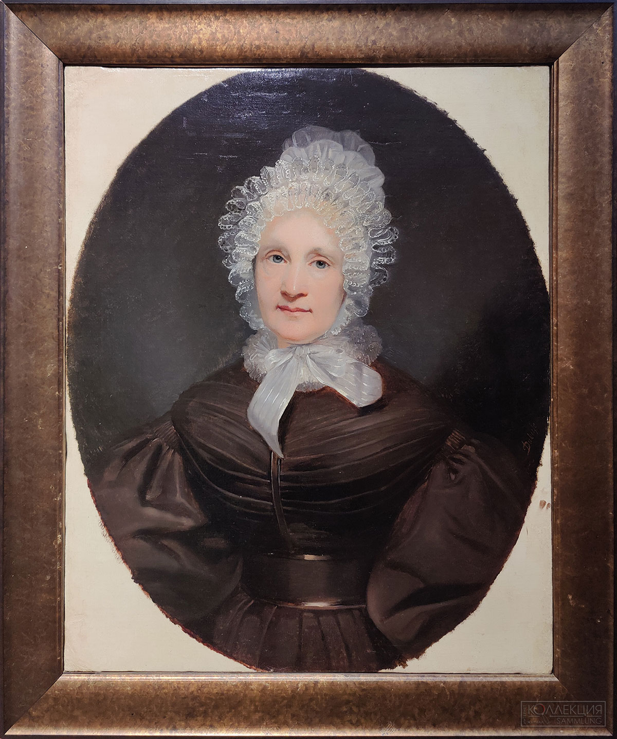 - Дюбюф Клод Мария (1790-1864). Портрет неизвестной в белом чепце. 1840-1850-6. Холст, масло. Музей В.А. Тропинина и московских художников его времени