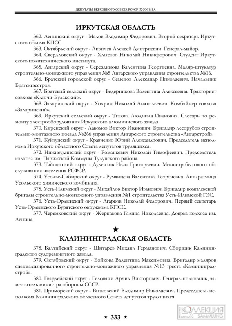 Вниманию коллекционеров значков! Вышла новая книга — справочник «Депутаты Верховного Совета РСФСР». В издании приведены данные по депутатам всех 12-ти созывов с 1938 по 1991 год. Информация дана по номерам избирательных участков, что позволяет определить принадлежность знака конкретному депутату по его номеру.