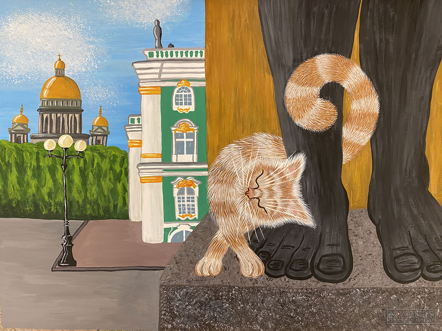 На выставке будут представлены работы победителей конкурса рисунков ко Дню Эрмитажного кота. Тема этого года: «Путешествие эрмитажного кота». Открытие выставки является одним из центральных событий праздника, посвящённого живущим в музее кошкам. Появившийся по инициативе Государственного Эрмитажа, он стал одним из самых любимых городских событий. В этом году День Эрмитажного кота пройдёт уже в 26-й раз.