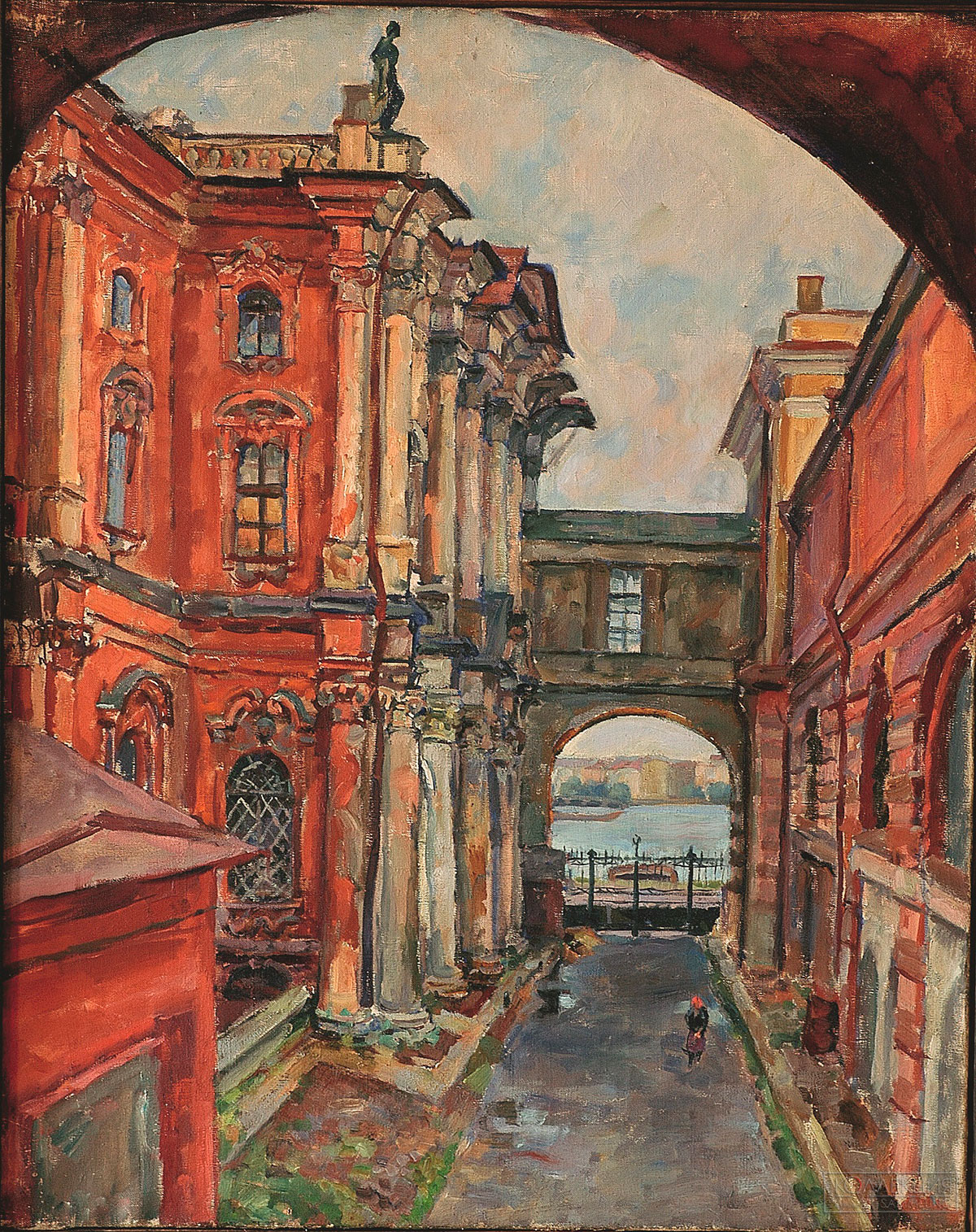 - Осмёркин А.А. Во дворе Эрмитажа. 1945 г., СССР, г. Ленинград. Оренбургский областной музей изобразительных искусств