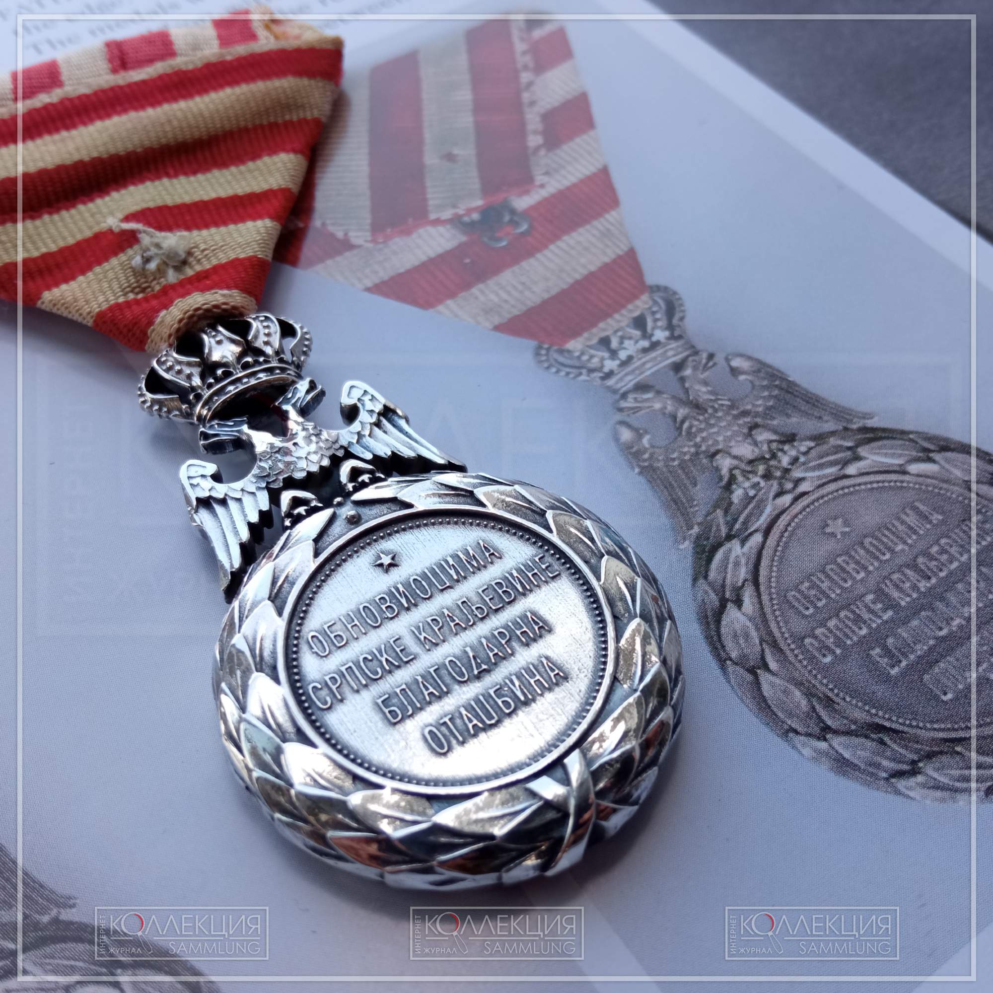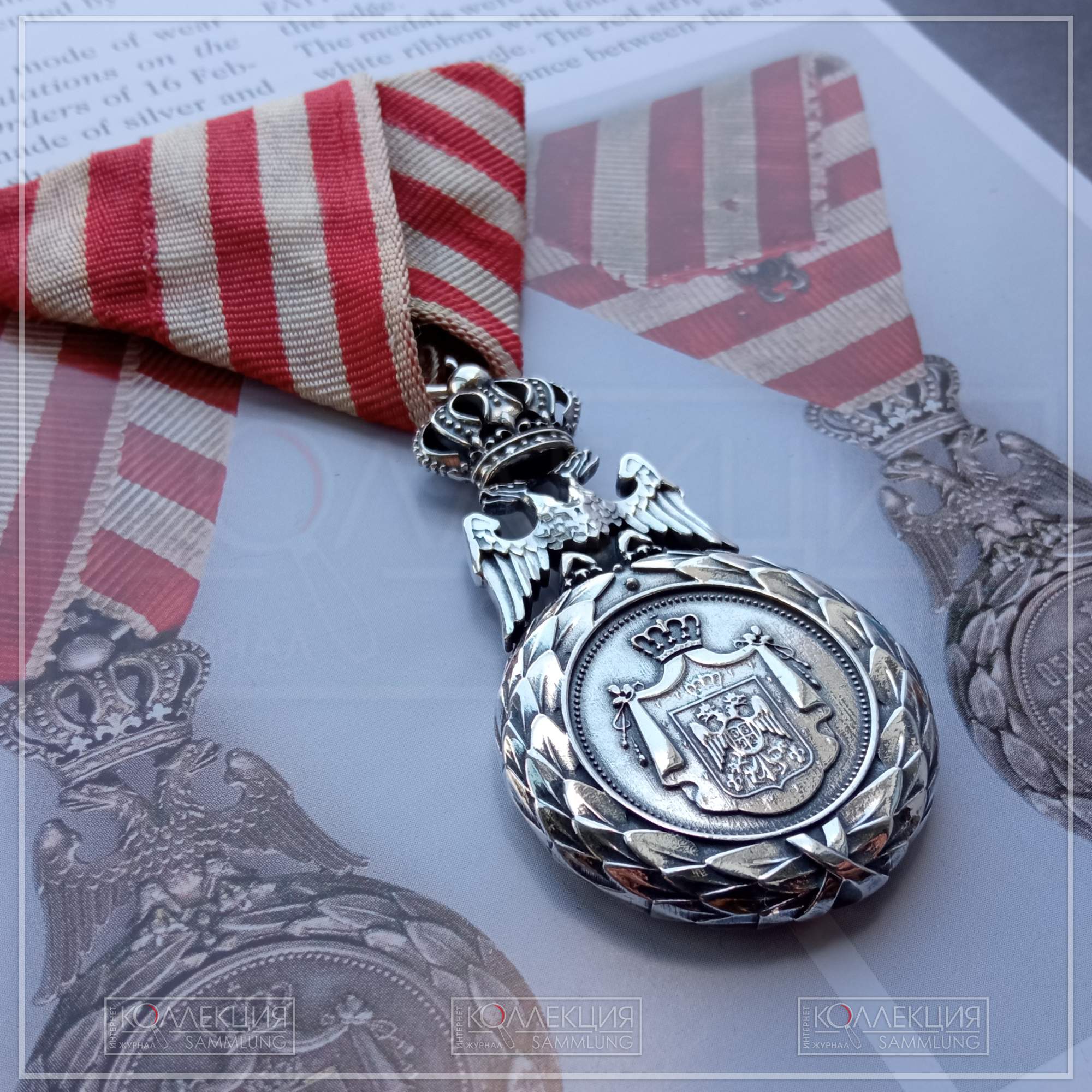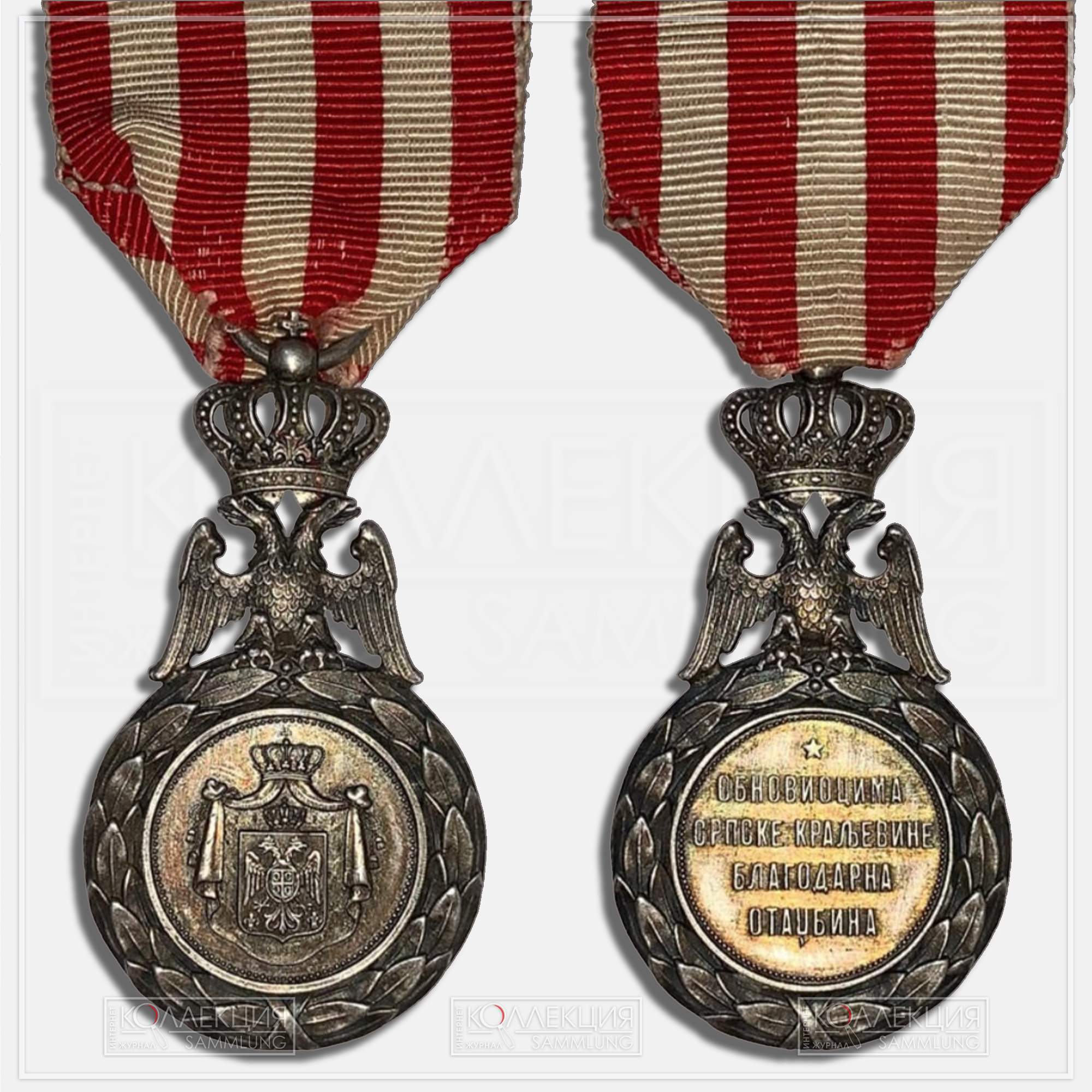 Интерес к этой медали, как, собственно и вообще попытка понять, что это за награда, начался с увиденной фотографии короля Сербии Милана I Обреновича (Милан Обреновић; 1854—1901). На этом фотографическом портрете он запечатлён с многочисленными, как и положено монаршей особе, наградами. Данную медаль носил на колодке первой. Это уже заслуживает внимания. Медаль, носимая перед орденами, да ещё и перед высшим (на момент съёмки, в 1885 году и до учреждения ордена Милоша Великого в 1898 году) орденом Белого Орла.
