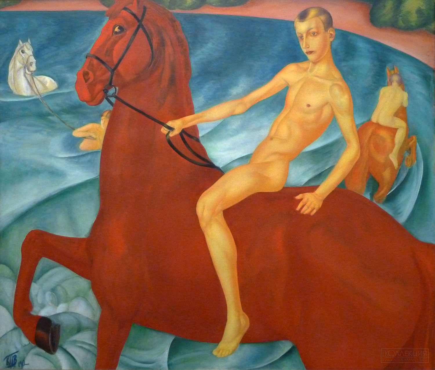 В золотой фонд отечественного искусства вошли произведения символистского периода художника. Это представленные на выставке полотно «Юность» (1913), этюды для картин «Сон» (1910), «Играющие мальчики» (1911), «Купание красного коня» (1912). Влияние древнерусской иконописи, характерное для творчества Петрова-Водкина этого периода, заметно в этюде для картины «Мать» (1912). В конце 1910-х также создаются выдающиеся произведения, среди которых знаменитый автопортрет мастера (1918).