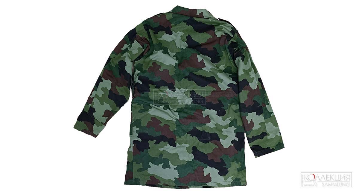 Ввиду отсутствия шифра СНО на бирке, яркого цвета камуфляжа, встречающихся на фото из Сербской Краине 1995 года, а также отсутствие следов нарукавного знака Войска Югославии на левом рукаве уже в коллекции на китель был пришит нарукавный знак Сербского Войска Краины.