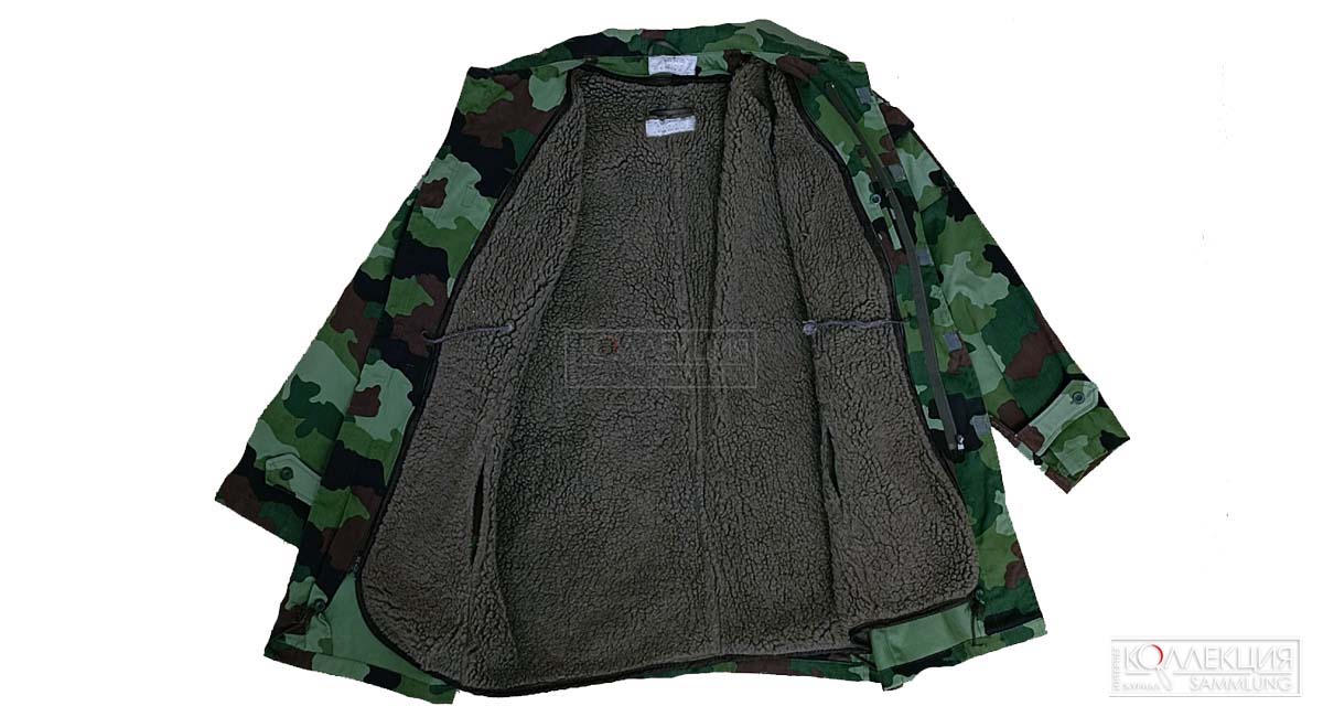 Производитель NOVITET (Нови Сад), 1999 год. Характерный бушлат М-93 пошит из камуфляжа «Дубовый лист». Китель имеет этикетку производитель с шифром СНО 8566 и с указанием модели М-93.