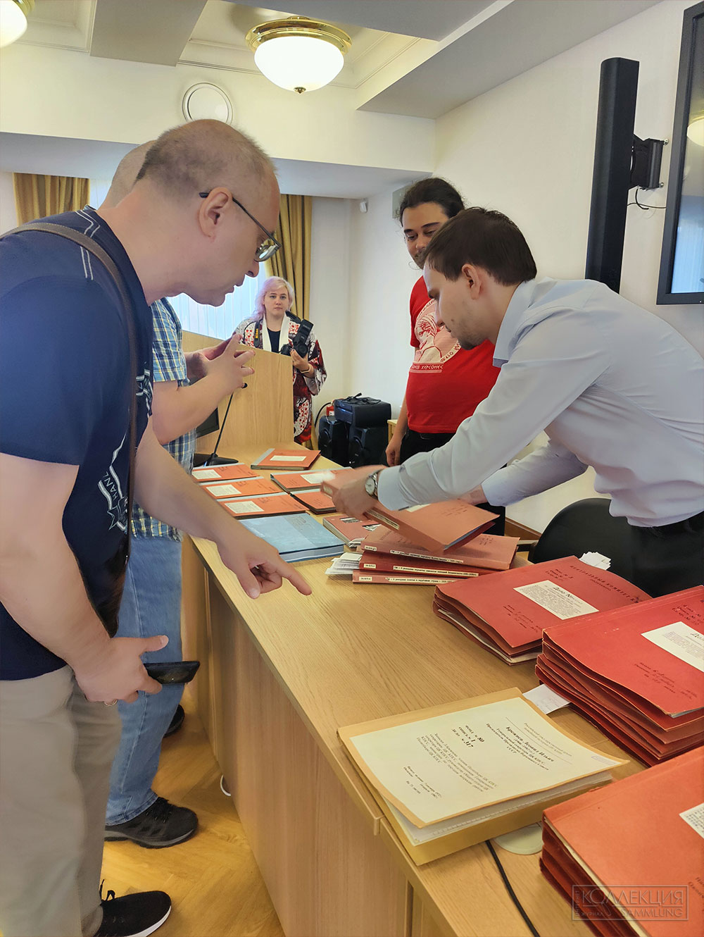 Соответственно, в архиве постоянно идёт процесс рассекречивания документов. Кстати, опровергнем ещё один миф, что архивисты сами не хотят ничего рассекречивать, потому что все рассекреченные материалы хотят публиковать сами. Как нас убедили, не всегда всё зависит от архивистов. Часто важным моментом при рассекречивании является какое-либо условие фондосдатчика, или просто его отсутствие (например, организация ликвидировалась без правопреемника и ещё не принято решение относительно принятых документов), наличие грифа ДСП (для служебного пользования) — этим занимаются специальные комиссии, а не архивисты решают. И документы могут снова стать ДСП. Да и политическая ситуация дополнительно влияет на работу: на те документы, которые в 1990-х массово рассекречивались, сейчас начинают смотреть и задаваться вопросом, стоило ли их рассекречивать? Случается, что документы могли отложиться не только в фондах РГАНИ, но и в других архивах, и там они уже рассекречены, что может создавать определённые проблемы для исследователей. И всегда важно понимать, что есть вышестоящие органы, которые решают рассекречивать или нет, выдавать или не выдавать.