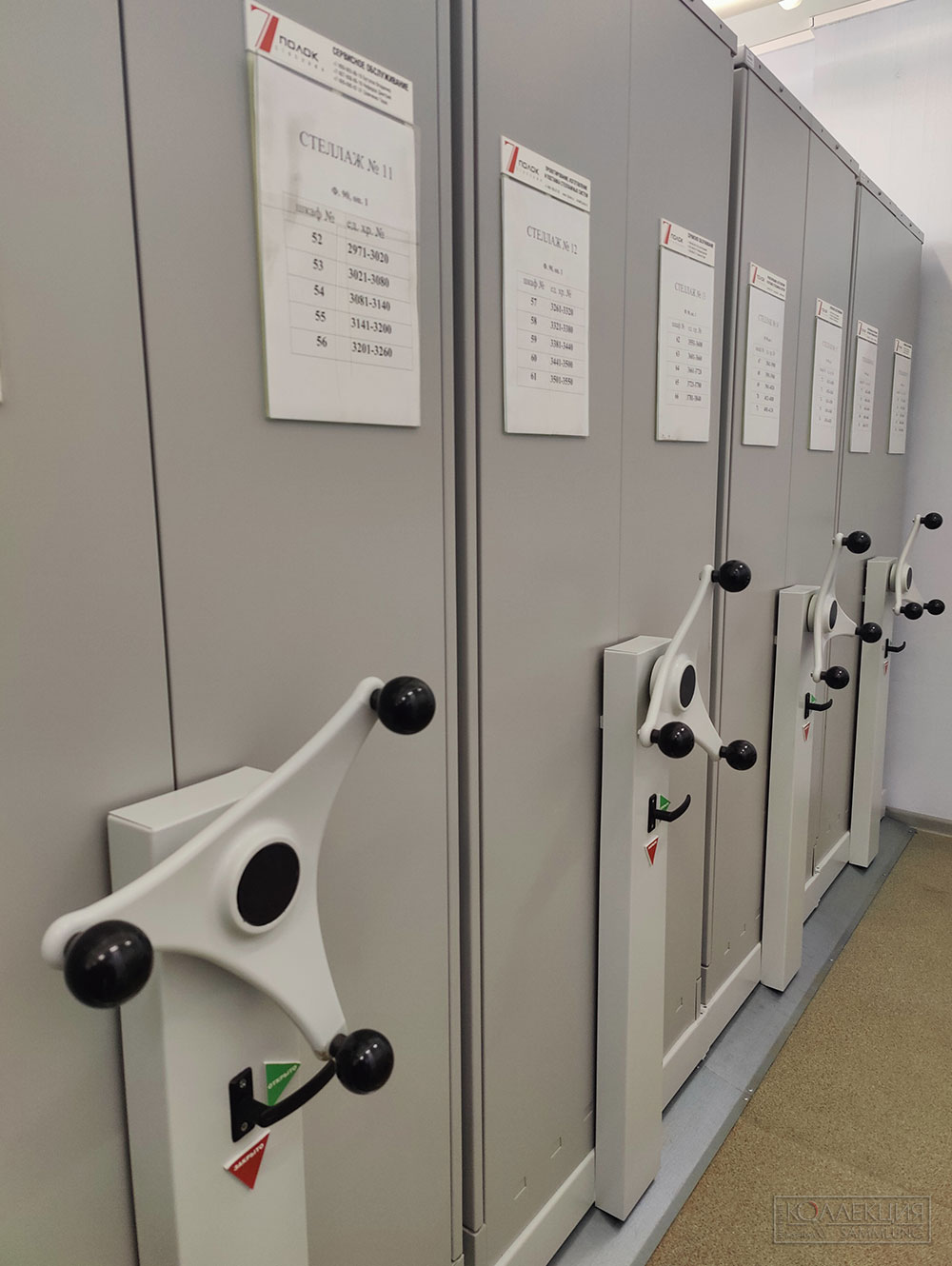 Архив располагается мы на трёх этажах: два этажа хранилища и один этаж с рабочими помещениями.