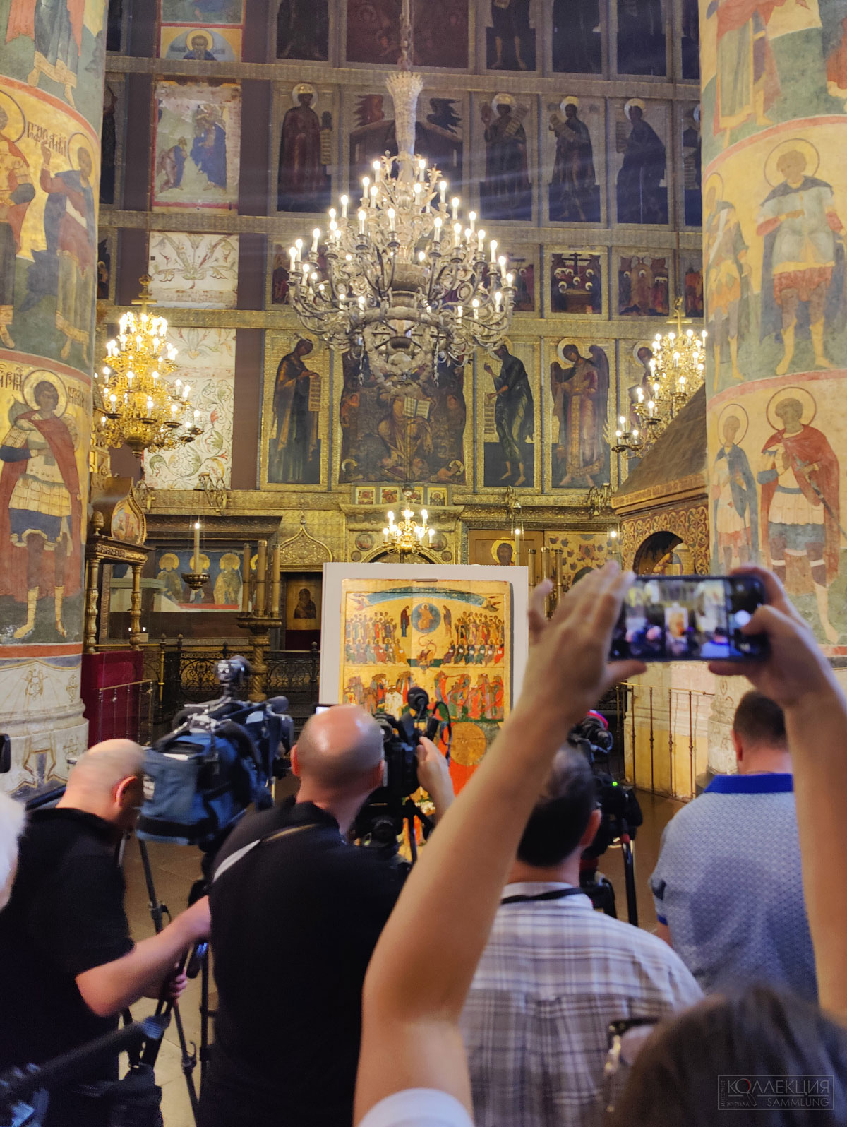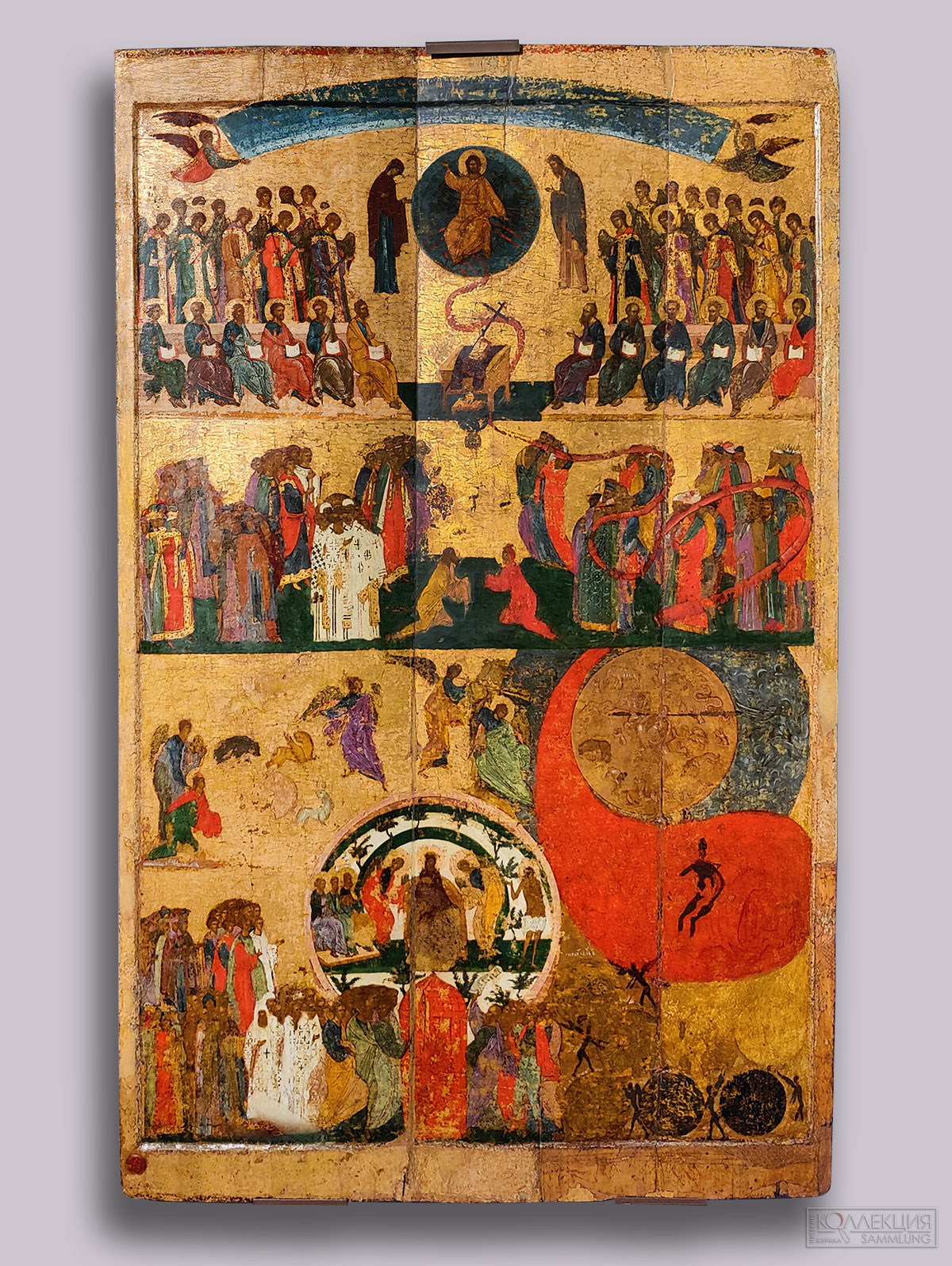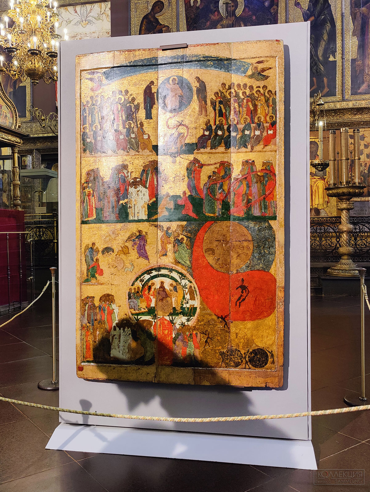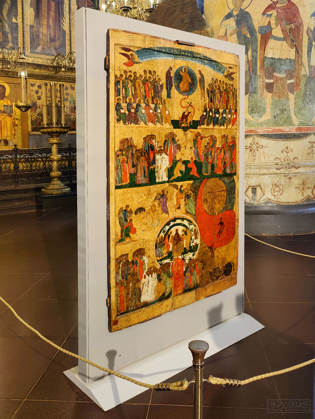 В Музеях Московского Кремля завершилась многолетняя реставрация одного из древнейших памятников из собрания Успенского собора иконы «Страшный суд». На протяжении многих десятилетий икона находилась в экспозиции собора, в южном пристенном иконостасе, покрытая потемневшим реставрационным лаком 1920-х годов времени, когда памятник впервые был раскрыт от позднейших записей и олифы.