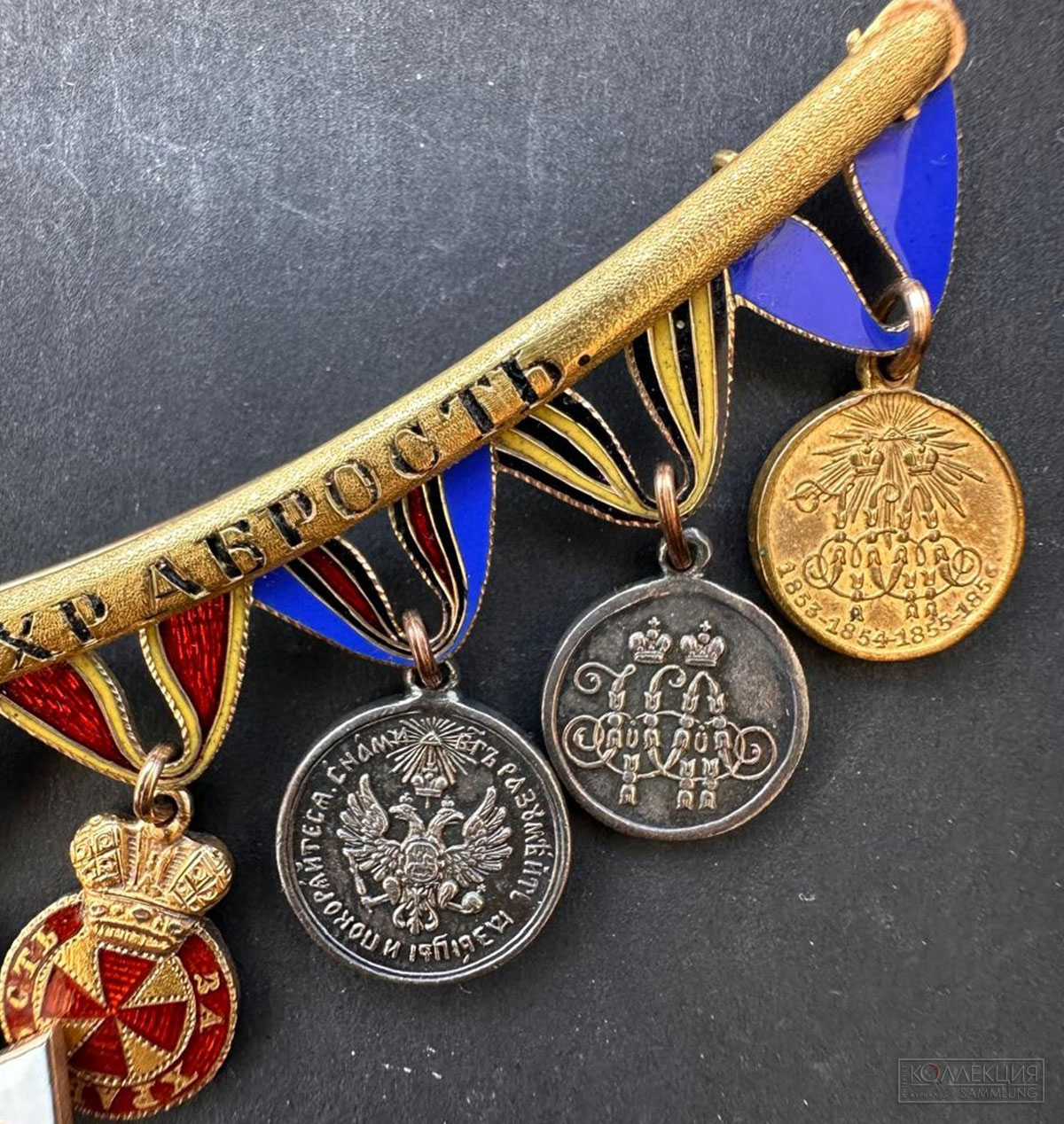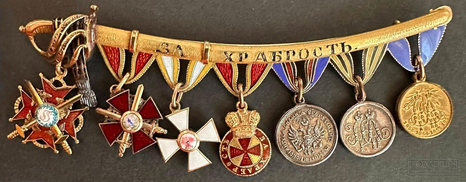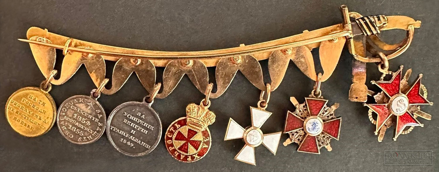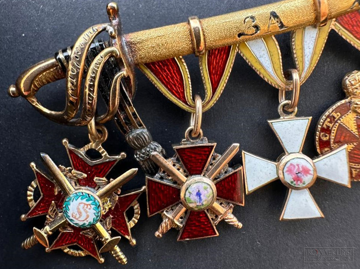 Даже такие скупые сведения вызвали сомнения в том, что комплект фрачных миниатюр принадлежал ему. Рассмотрим пристальней эту наградную колодку.