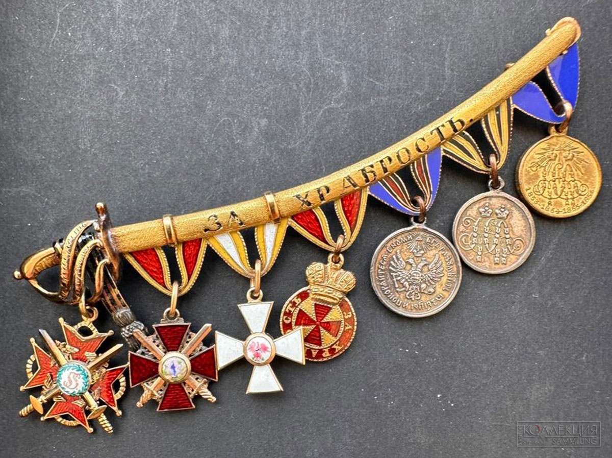 Фрачные миниатюры с боевыми наградами говорят, что человек, который их носит не просто штатский пижон, а настоящий боевой офицер. Поэтому, когда я увидел комплект прекрасно изготовленных фрачных миниатюр захотелось узнать о человеке, который заказал его. Ведь первоначальная её атрибуция оказалась не верной. А примером удачного исследования методом историко-фалеристической атрибуции наград и установления имени владельца фрачных миниатюр является работа Сергея Николаевича Головина «Знак четырёх. Атрибуция»[1].