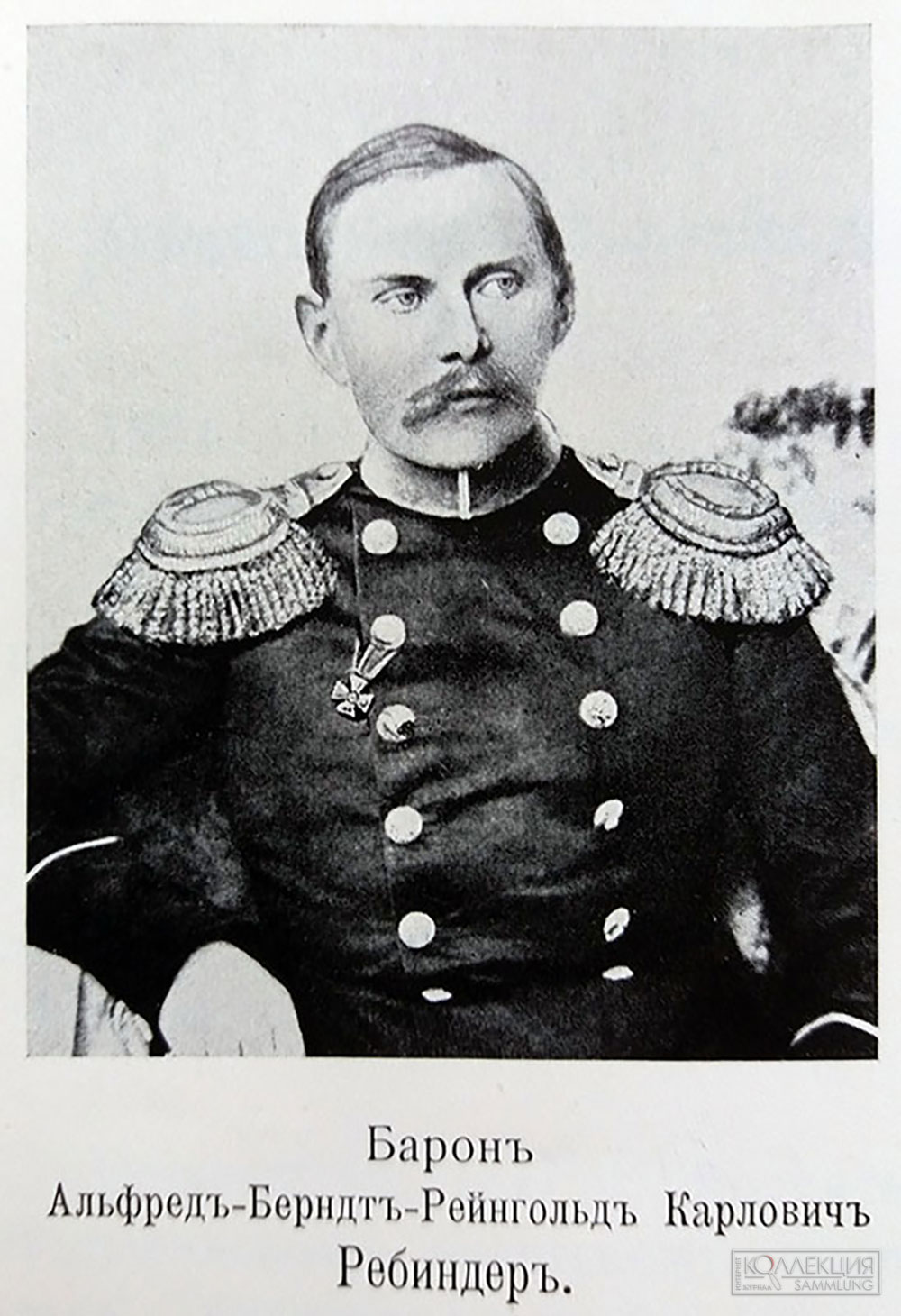 Барон Ребиндер Альфред Карлович (1817-1883) – генерал-майор (1881), член Верховного суда Финских войск, кавалер ордена Св. Георгия IV ст. (26.11.1855). Как можно понять он тоже не подходит по наградам, также он имел титул барона, а не графа.