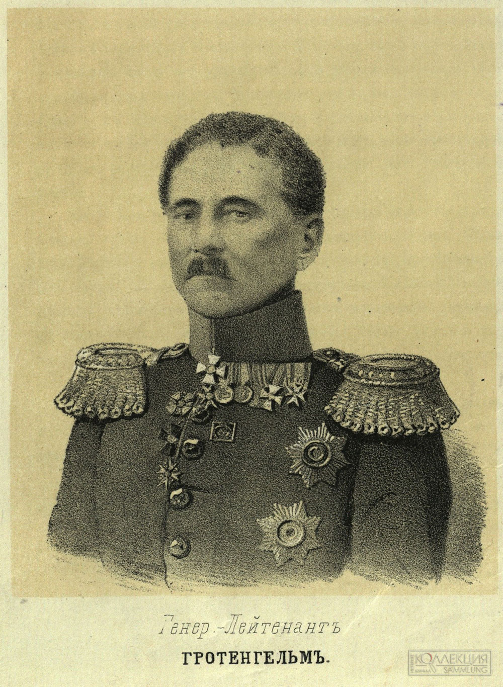 [33] Максим Максимович Гротенгельм (нем. Magnus Johann von Grotenhielm; 8 мая 1789 — 15 ноября 1867) — генерал-лейтенант (23.03.1847) русской императорской армии, герой Наполеоновских войн 1812-1814 годов, покорения Кавказа и Венгерской кампании 1849 года.