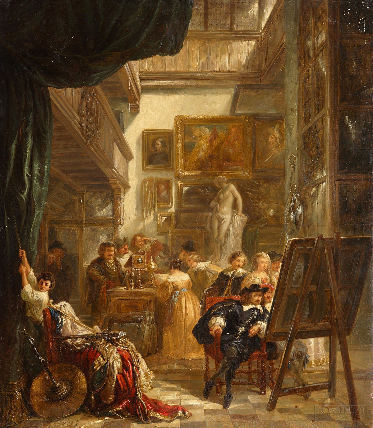 - Неизвестный художник XIX века. Жанровая сцена. В мастерской Рембрандта. Музей В.А. Тропинина и московских художников его времени
