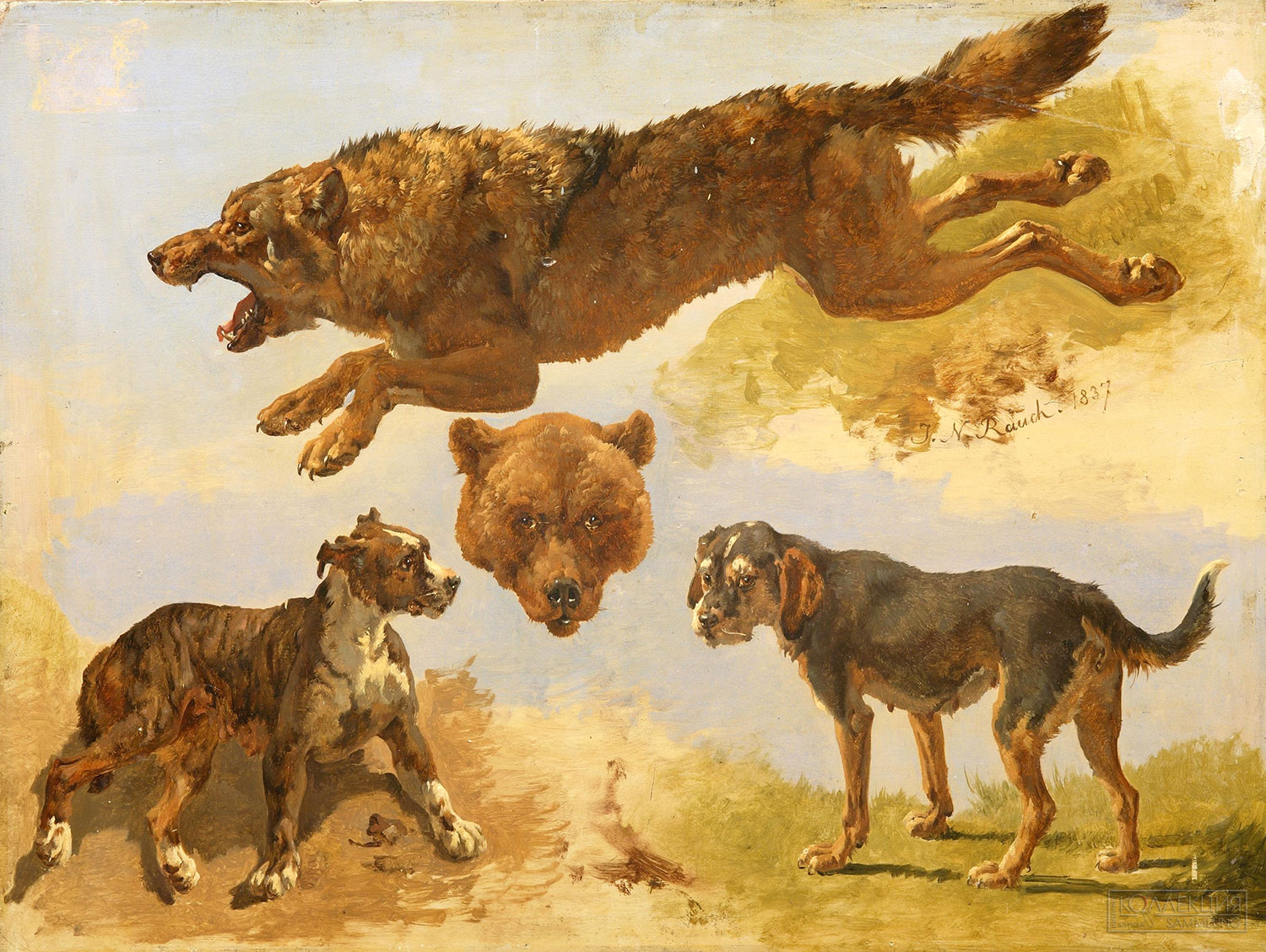 - Раух И. Композиция со зверями в пейзаже. Этюд. Музей В.А. Тропинина и московских художников его времени