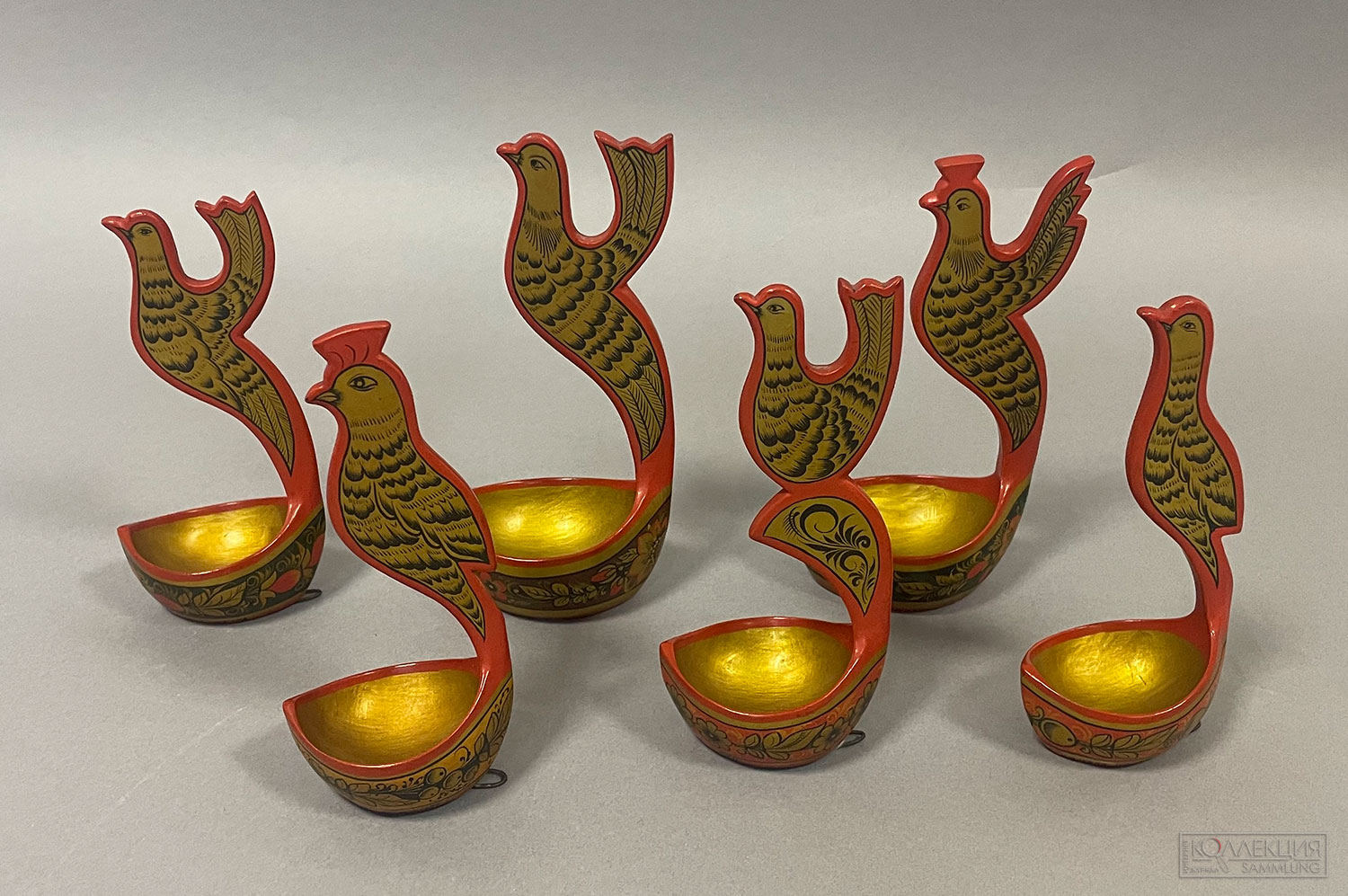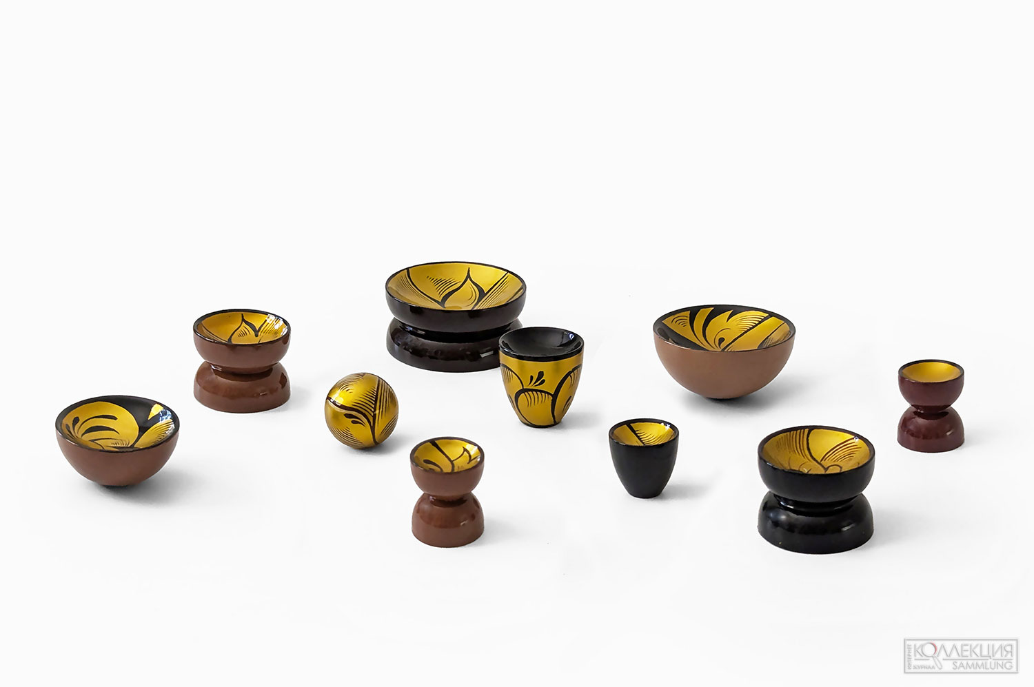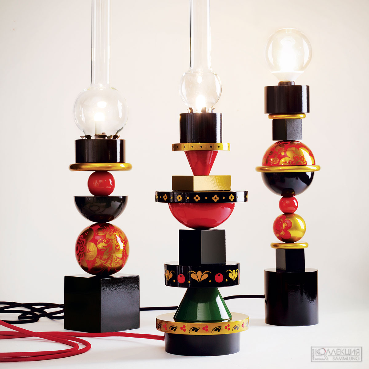 Первый зал – «Лаборатория» – рассказ о том, как переосмысляли народную Хохлому профессиональные художники Московского кустарного музея в XIX веке и советского института художественной промышленности, как формировался стиль, сохранялась традиция и уникальность в тиражном производстве. В зале «Советская Хохлома 1930–1950-х» будут показаны лучшие образцы как утилитарных тиражных предметов, так и уникальные произведения, созданные для всесоюзных и международных выставок. Вазы классических форм по типу греческих амфор, братины и ковши, скульптурные объекты причудливых форм, например, змей, кусающий себя за хвост или ковш-рыбка. Впервые показаны экспериментальные изделия из нетрадиционного для хохломы материала – фарфор, керамика, стекло. Завершат выставку лаконичные предметы эпохи 1960-х, а также образцы переосмысления и интерпретаций хохломской росписи современных художников и дизайнеров в зале «От оттепельного минимализма к современности». Так, народный художественный промысел вдохновил для новой линейки дизайнера Алёну Ахмадуллину, которая синтезировала традиционные образцы Хохломы из архивов XIX века и современный дизайн, – в коллекции посуды и предметов интерьера, коллекционных игрушках, аксессуарах. Узнаваемые завитки – «золотую кудрину» использует и дизайнер Ольга Миккова в серии ламп и светильников, дизайнер Сергей Сысоев опирается на эксперименты с цветом и орнаментом основателя школы хохломской росписи в Семёнове Георгия Матвеева, а бренд PERINNE создает лампу-конструктор на основе классической керосиновой лампы и геометрии деревянных деталей с элементами Хохломы.
