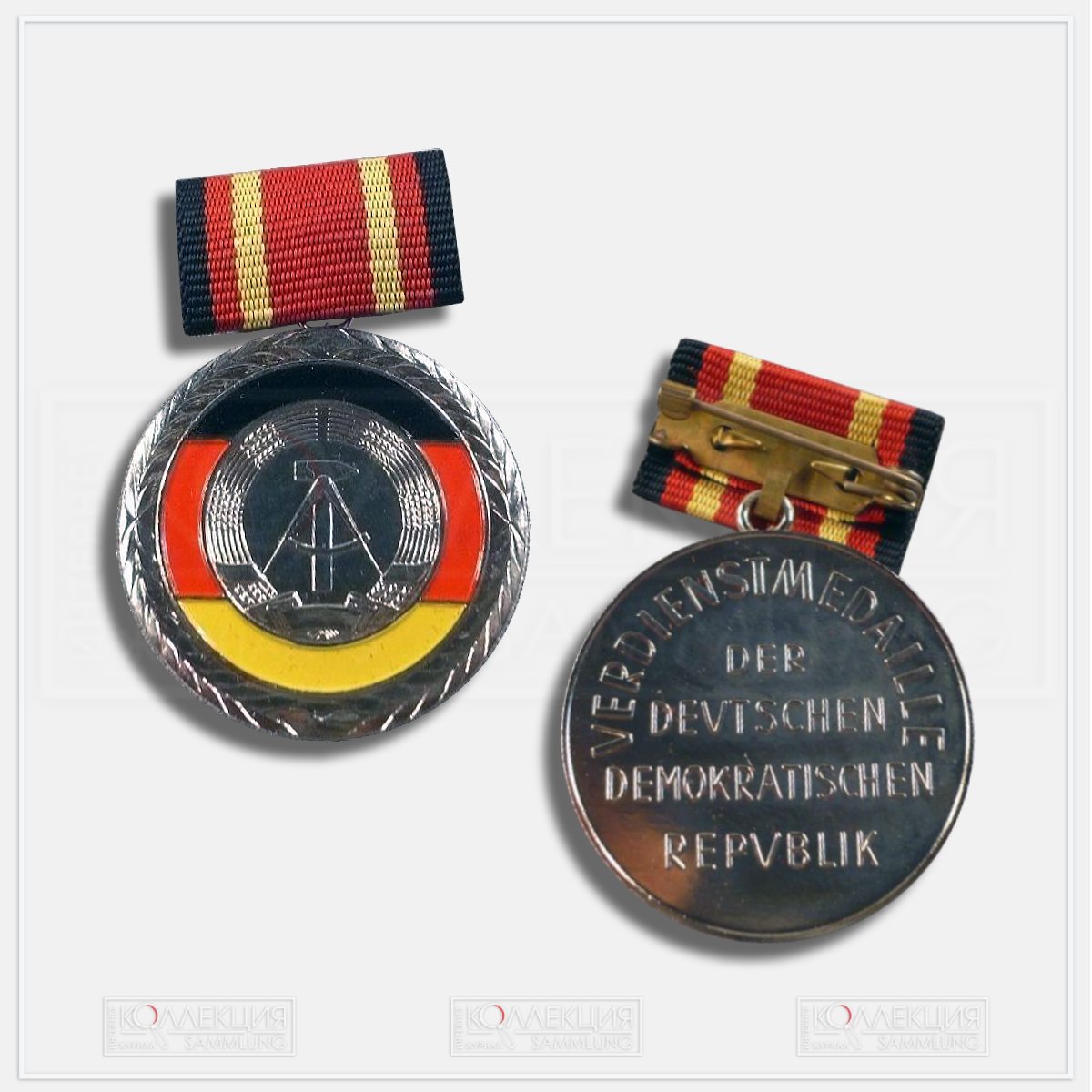 Следующая планка «поддалась» быстрее, это — медаль «За заслуги перед ГДР» (нем. Verdienstmedaille der DDR).