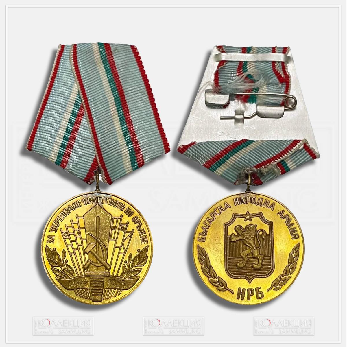 - НРБ. Медаль «За укрепление братства по оружию» (болг. Медал «За укрепване братството по оръжие»). Варианты изготовления без эмали и с эмалью. Фото: forum.faleristika.info
