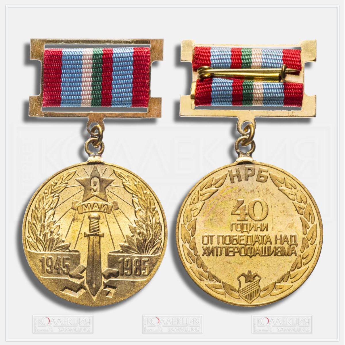 Хотя тут были и остаются некоторые сомнения, ведь аналогичные цвета, только с другими пропорциями (крайние красные полосы уже), имеет лента другой болгарской медали — «За укрепление братства по оружию». И эта медаль была учреждена в 1975, в отличие от 1985 года, когда была учреждена медаль «40 лет Победы над фашистской Германией». С одной стороны, при изготовлении планок в СССР не должно было иметься проблем с лентами «Шестнадцатой советской республики», как называли тогда Болгарию. С другой стороны, кавалер, как будет показано ниже, имел награды «братства по оружию» от Польши и Чехословакии. Но всё же, мы склонны думать, что лента нашей медали — 1985 года.