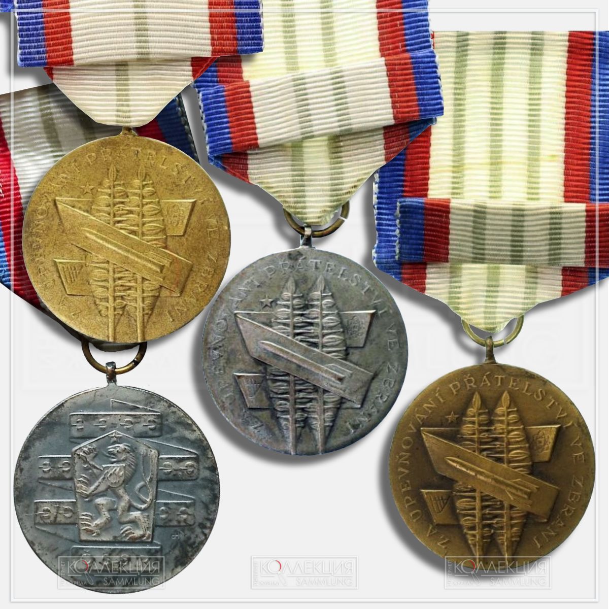 Последние три награды не вызывали сомнений в силу знакомства с цветовым сочетанием лент. Это чехословацкие медали «За укрепление дружбы по оружию» трёх степеней.