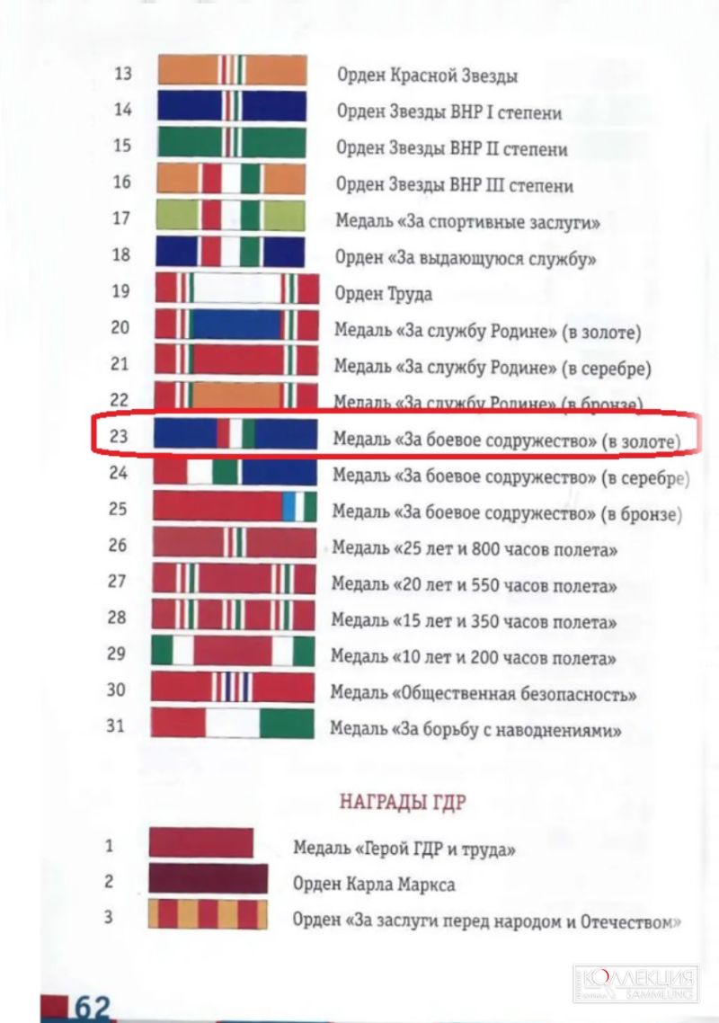 Именно там нашлась лента соответствующих цветов с указанием «медаль «За боевое содружество» (в золоте)».