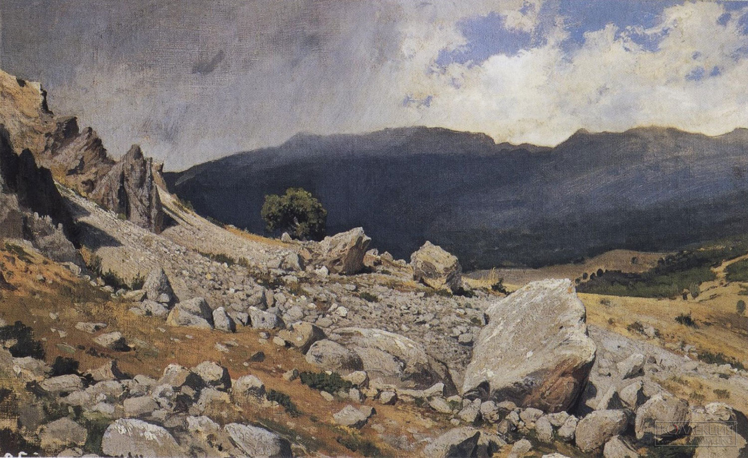 - Шишкин И.И. Из окрестностей Гурзуфа. 1879. Х. на картоне, м. 35 х 54. ГРМ