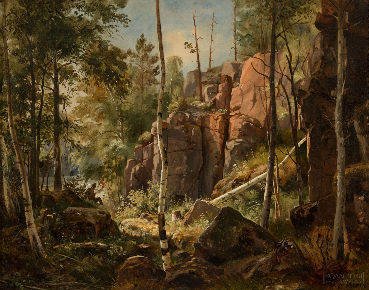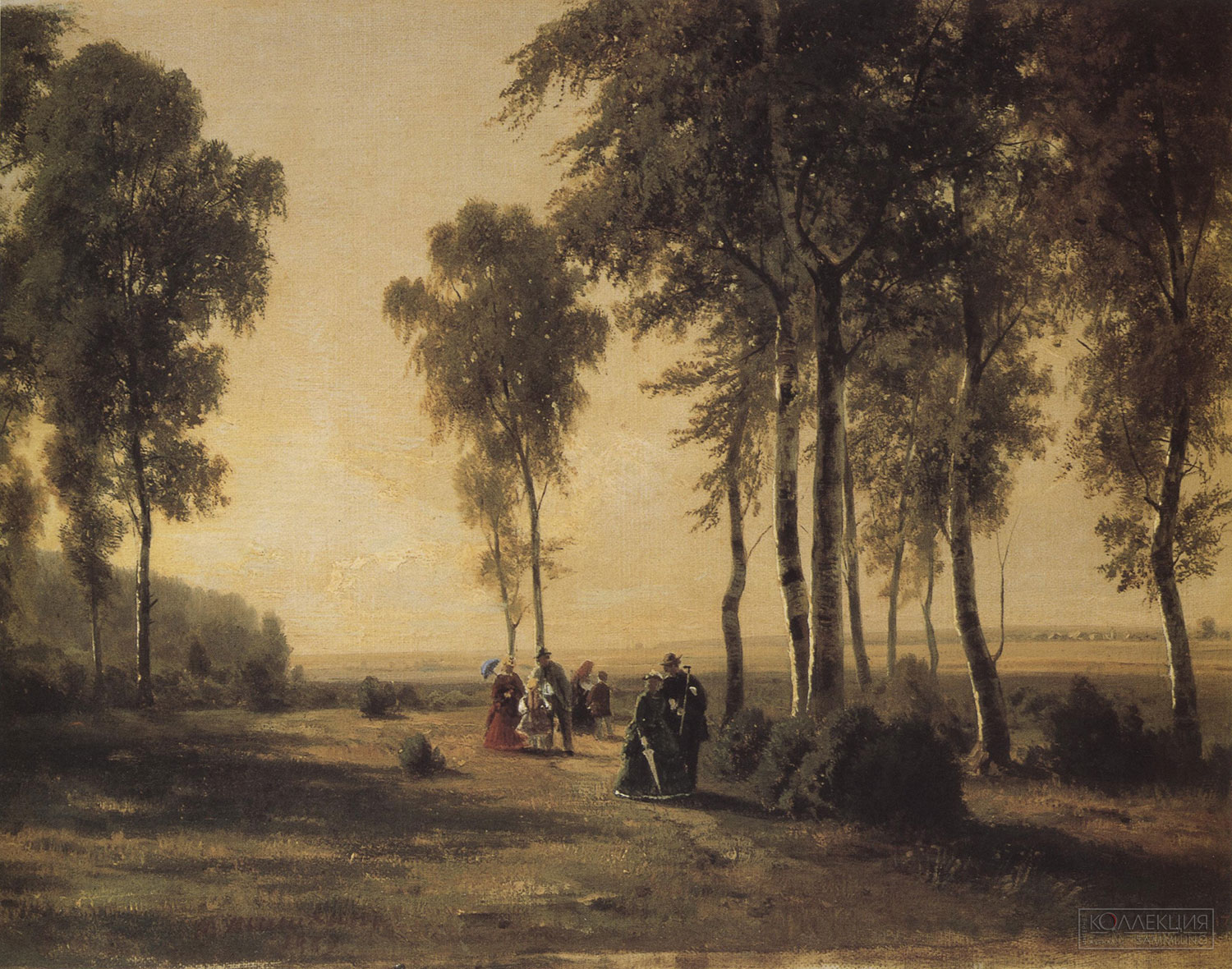 - Шишкин И.И. Пейзаж с гуляющими. 1869. Х.,м. 31.5 х 41.5. ГРМ