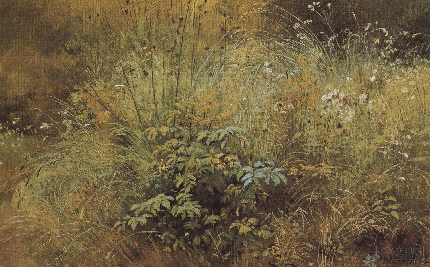 Деревенские пейзажи и сцены крестьянской жизни тоже заняли важное место в творчестве Шишкина («Деревенский двор», конец 1860-х). Во второй половине XIX века, когда живопись конкурировала с фотографией, Иван Шишкин достиг выдающейся иллюзорной точности, которую демонстрирует прославленный камерный этюд «Травки» (1892), отражающий многообразие растительного мира.