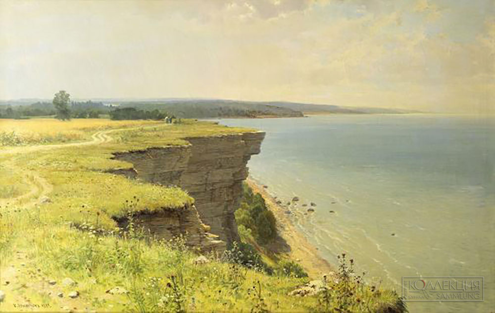 Его пейзажи, будь то южные («Из окрестностей Гурзуфа», «Мыс Ай-Тодор. Крым», 1879) или северные («Молодые сосенки у песчаного обрыва. Мери-Хови», 1890), отличает безупречная детализация. Сочетание фрагментов природы с широким воздушным пространством придает им эпическое звучание («У берегов Финского залива (Удриас близ Нарвы)», 1888).