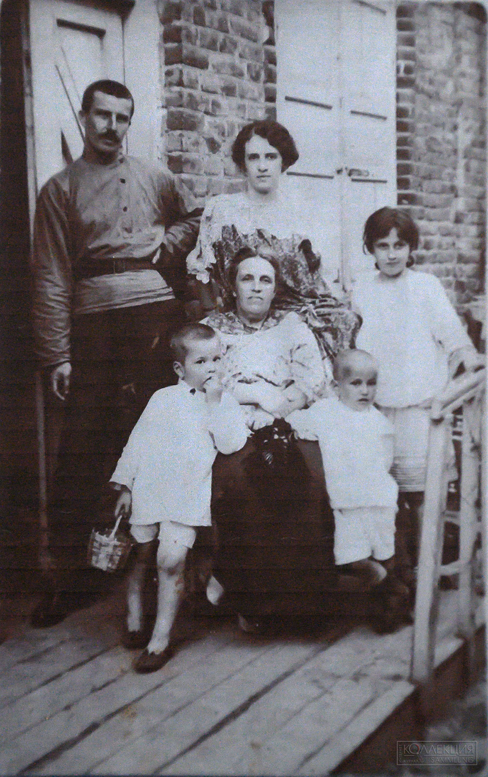 - Москва, 1915 г. (?) На фото слева направо:Винча Станислав Брониславович (1887-1968) в военной свободной форме. Винча Евгений Станиславович (1910-2005). Косаковская Людмила (1874- ?) Мать Наталии Насветевич Наталия Евгеньевна (1890-1984), жена Станислава. Болкунов Александр Александрович (1912- ? ), сын Болеславы Б., старшей сестры Станислава.Насветевич Варвара Е., младшая сестра Наталии (1895-? ).