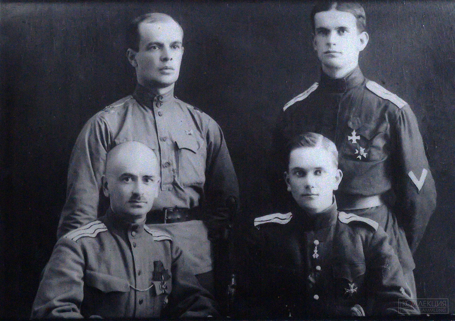 - 1919 г., август. Братья Топорковы, г. Екатеринодар. Последнее фото, где они все вместе, у родителей, где также присутствовала сестра Анна А. (1891-1981), моя крёстная мать, которая в том же году вышла замуж за Георгия Викторовича Северина (1874-1944) который был на много лет старше её.