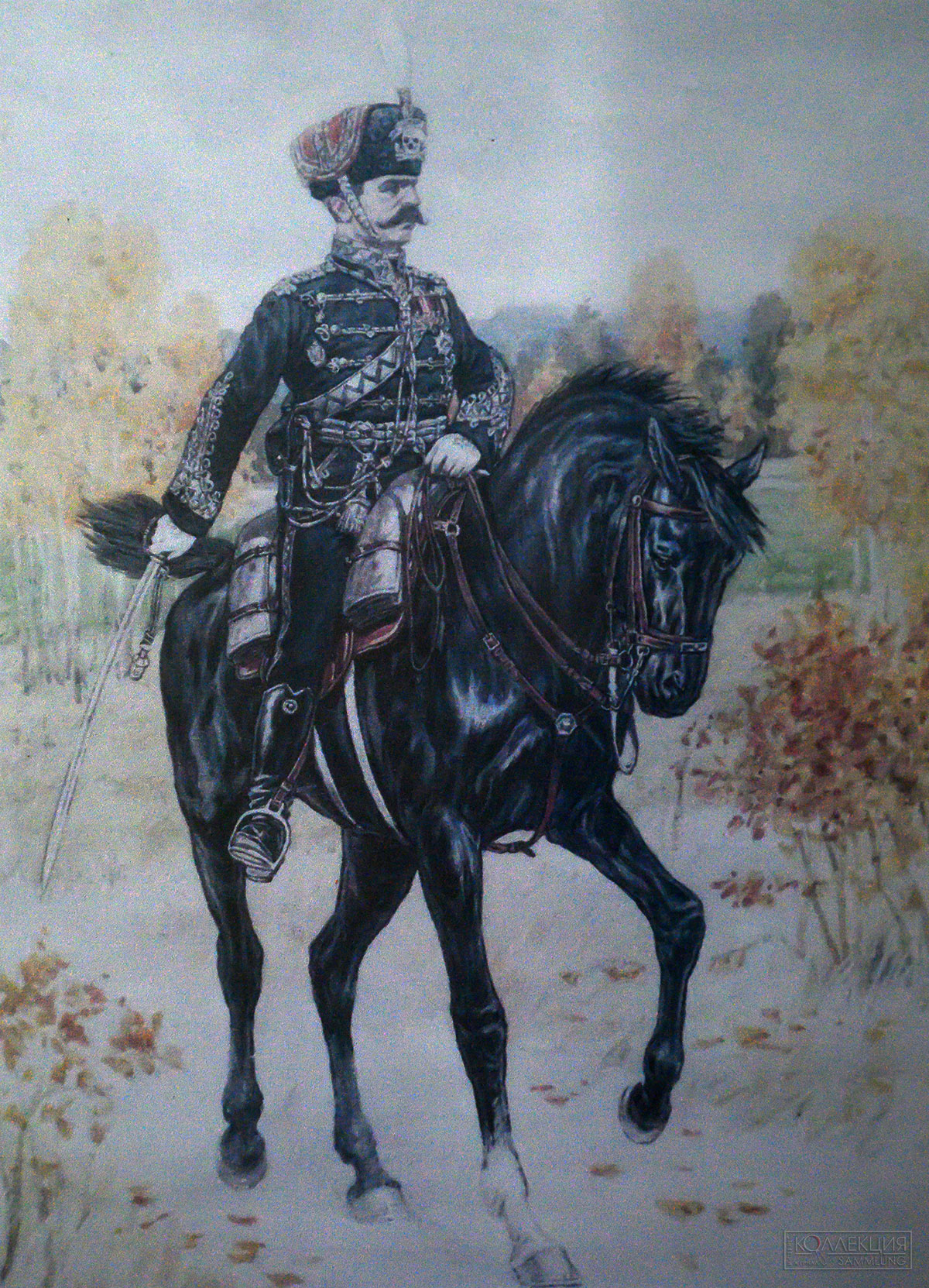Он был военным. И мой дядя Сергей, когда был маленьким, видел, около было какой-то такой пруд, куда эти как-то гусары приходили и поили своих лошадей. И всё это как-то произвело впечатление. И мой дядя сказал, что станет военным и гусаром. И когда пришло время он поступил в Елизаветградскую кавалерийскую школу. И оттуда его распределили в Александрийский полк. В 1904 году стал он адъютантом полка. В 1910 году — штаб-ротмистром. И он с некоторыми друзьями, ну, я всех как-то, конечно, не помню, но некоторых записал. Один Владимир Петрушевский, который довольно знаменитый вулканолог и теперь. И Карамзин. Один из братьев Карамзиных — авторе воспоминаний о Первой Мировой войне. Очень интересовались историей полка. И её записывали.