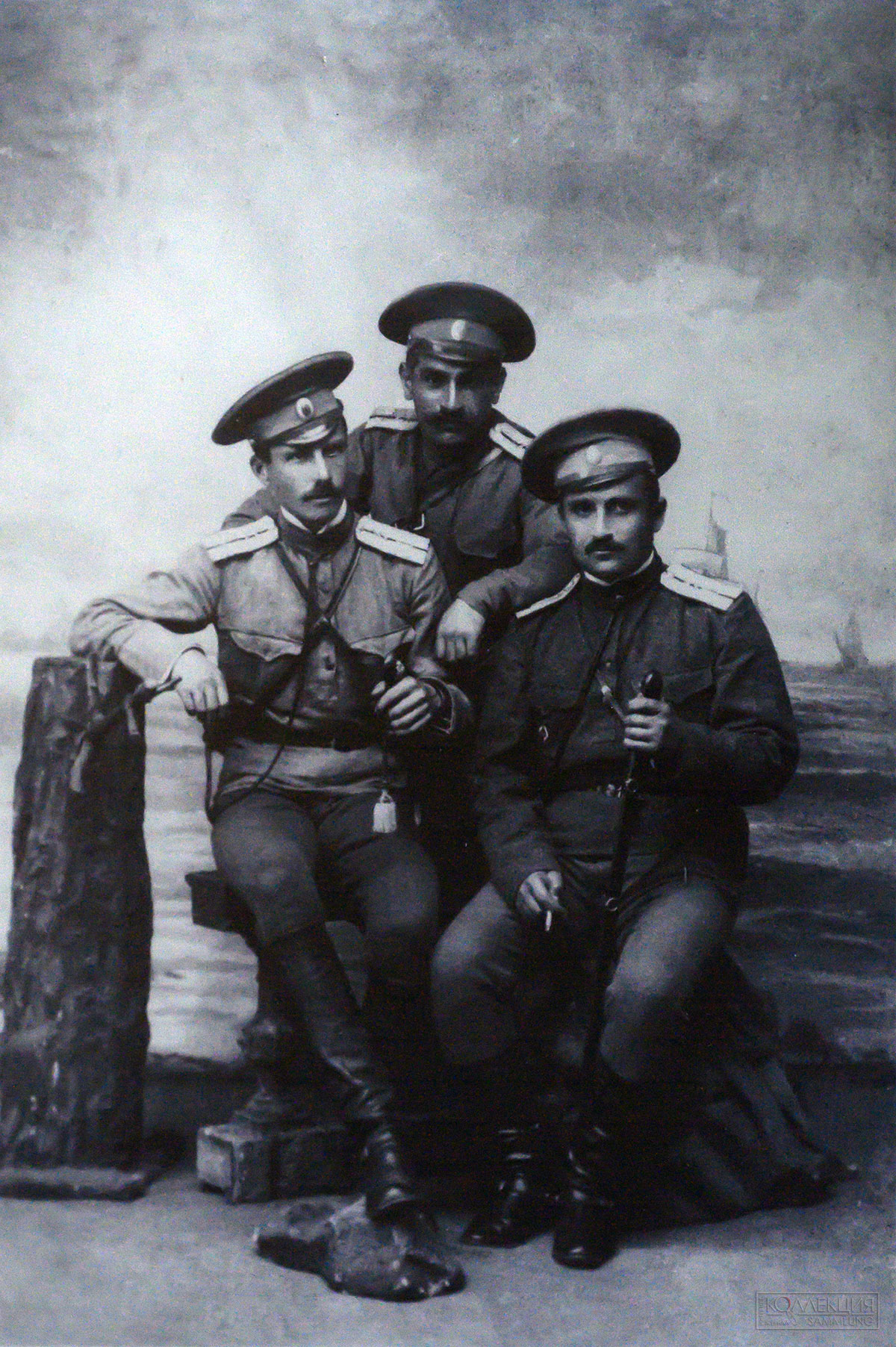 - 1916 г. Фото трёх ополченцев 2-го Кавказского Сапёрного батальона в Батуми. Слева сидит поручик де Винча Станислав Брониславович (1667-1968) в полевой форме 1-й МВ. Он носит его любимую шашку Кавказского образца. К концу действий в 1917 г., при которых он сильно был ранен и контужен. У него по окончании войны были следующие награды: Ордена Св. Станислава 3-й степени и 2-й степени с мечами; Орден Св. Анны 4-й, 3-й 2-й степеней с мечами. В 1918 г. назначен командующим Сапёрной ротой.