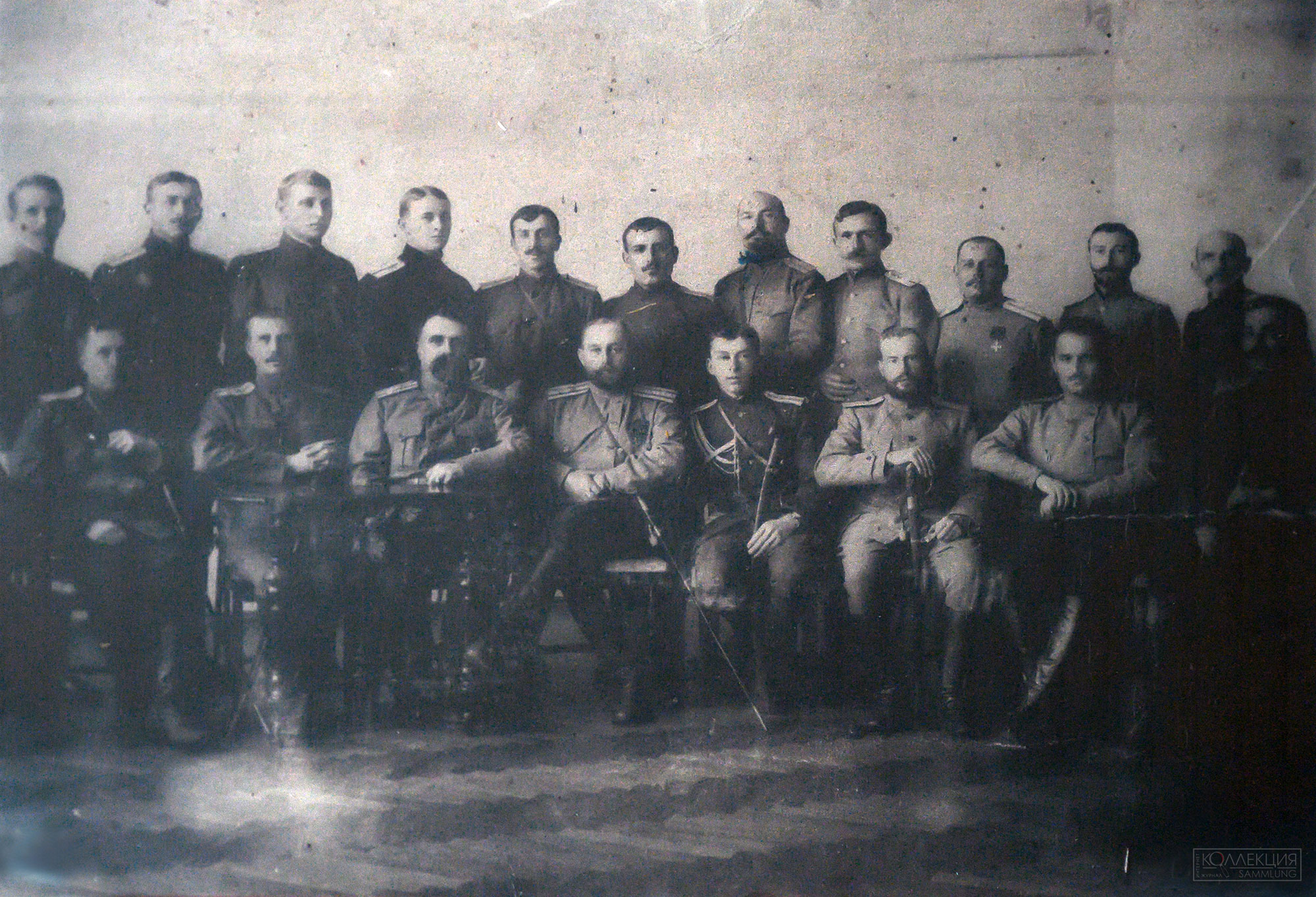 - Россия. Кавказ. Собрания Штаба Михайловской крепости в г. Батуми. Сидят слева направо: второй слева поручик С.Б. де Винча, командующий ротой сапёров.