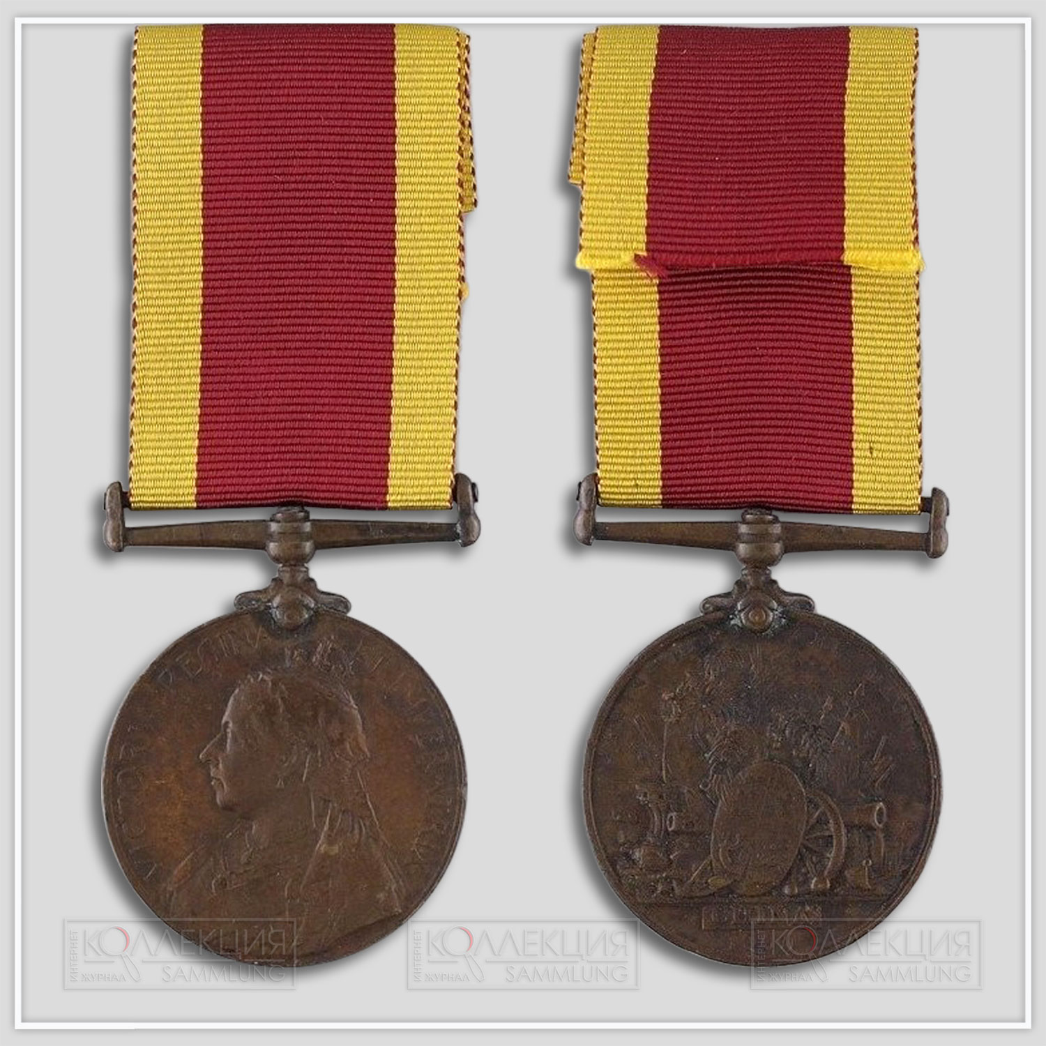 Бронзовая медаль предназначалась для военнослужащих индийских и других колониальных войск принимавшие участие в подавления Боксёрского восстания 1900 года.