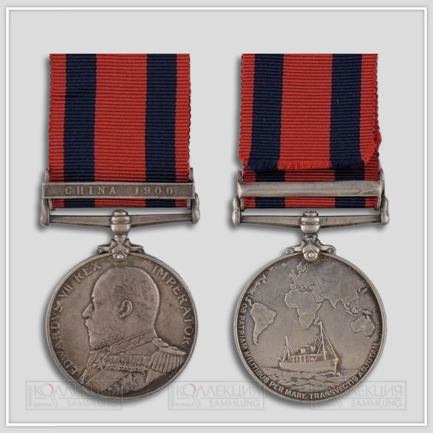 Существовала еще одна медаль которая напрямую связана с событиями в Китае 1900 года. 8 ноября 1903 года была учреждена – «Транспортная медаль» (Transport Medal). Ею с планкой «China 1900» (Китай 1900) награждались капитаны и старшие офицеры транспортных кораблей (в том числе и госпитальных судов), осуществлявших доставку войск и техники в Китай для подавления Боксёрского восстания.